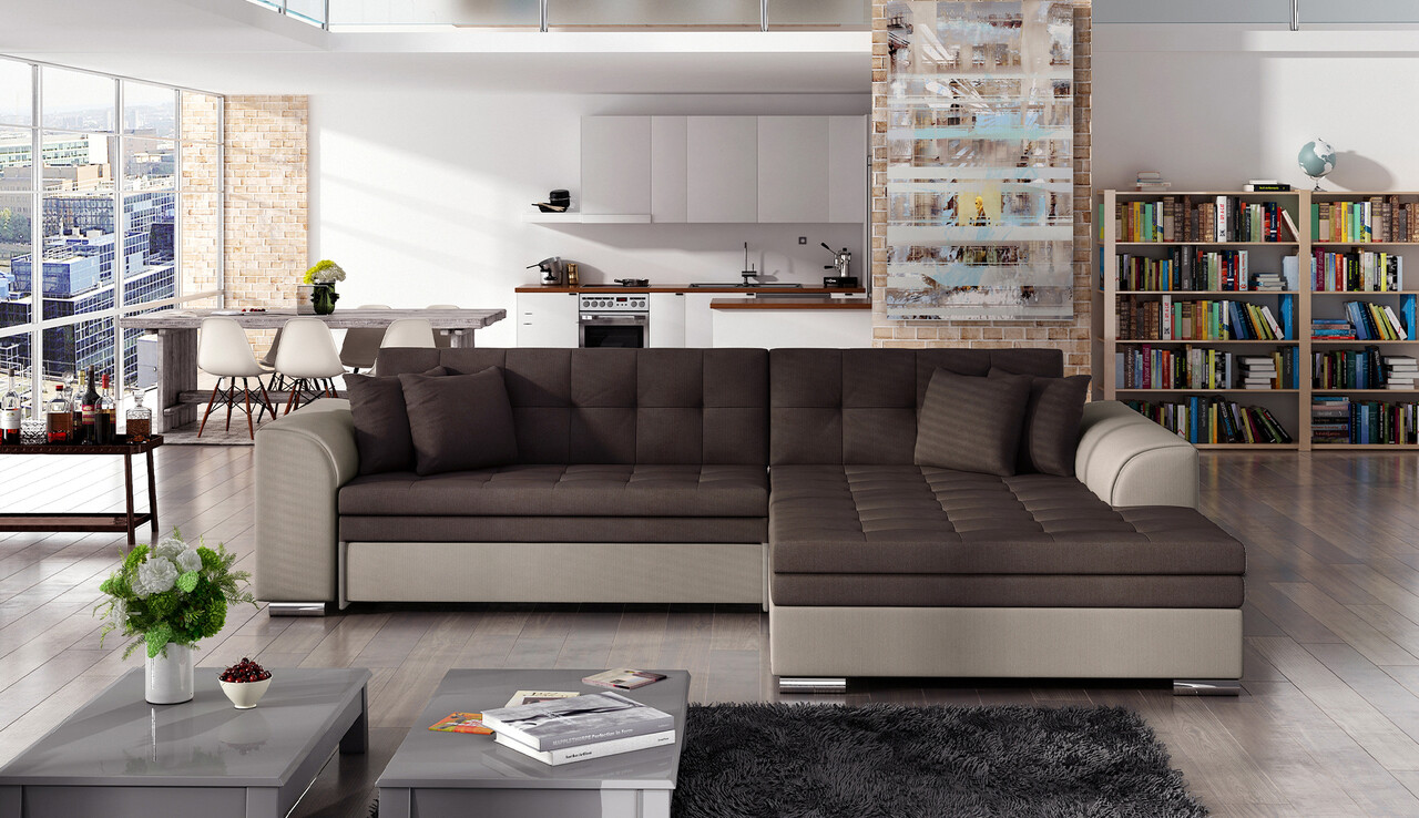 Coltar extensibil dreapta 4 locuri, ELTAP, Sorento, 296x194x78 cm, lemn/poliester, maro/bej