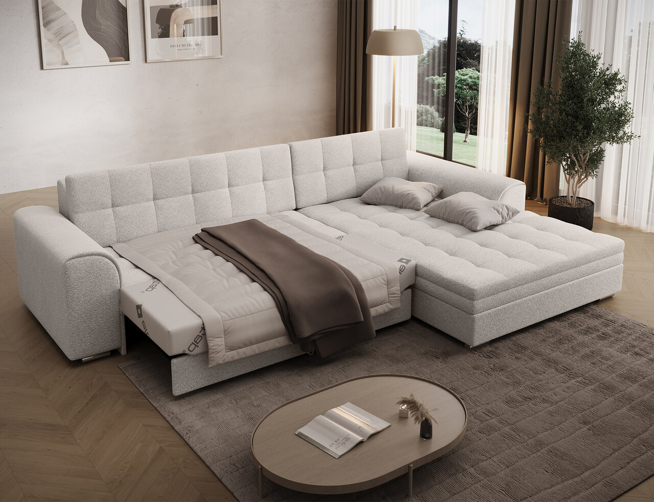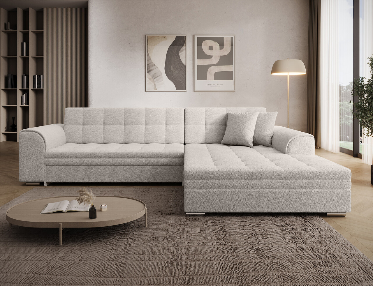 Coltar extensibil dreapta 4 locuri ELTAP, Sorento, 296x194x78 cm, lemn/poliester, alb murdar
