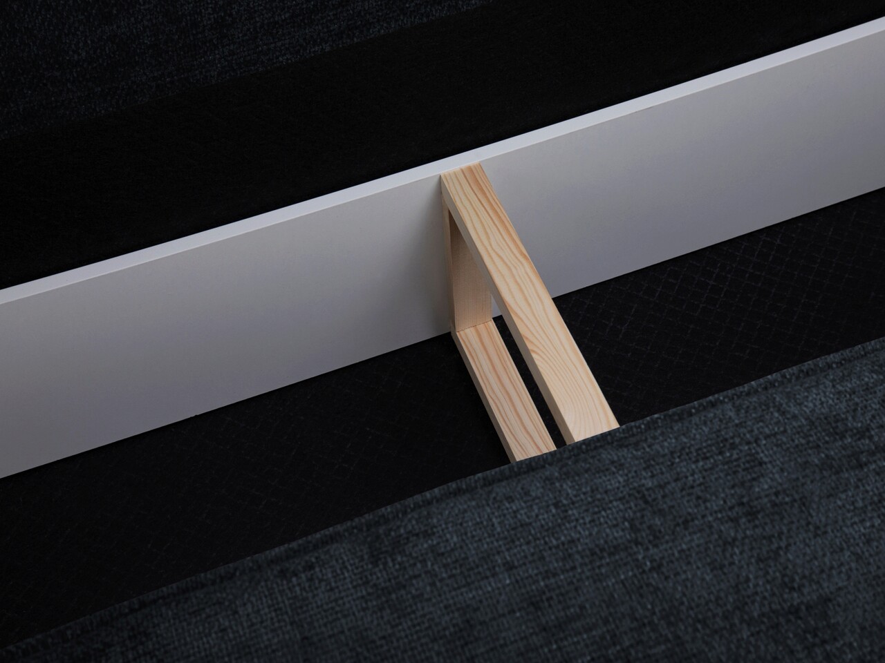 Material structura: cadru din lemn masiv de pin, PAL, placi din fibra, placaj, arcuri, picioare din plastic negru.