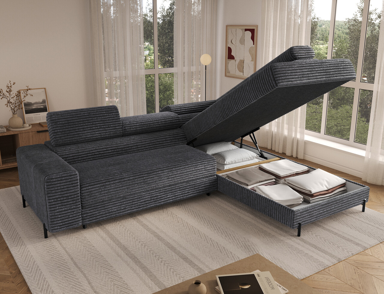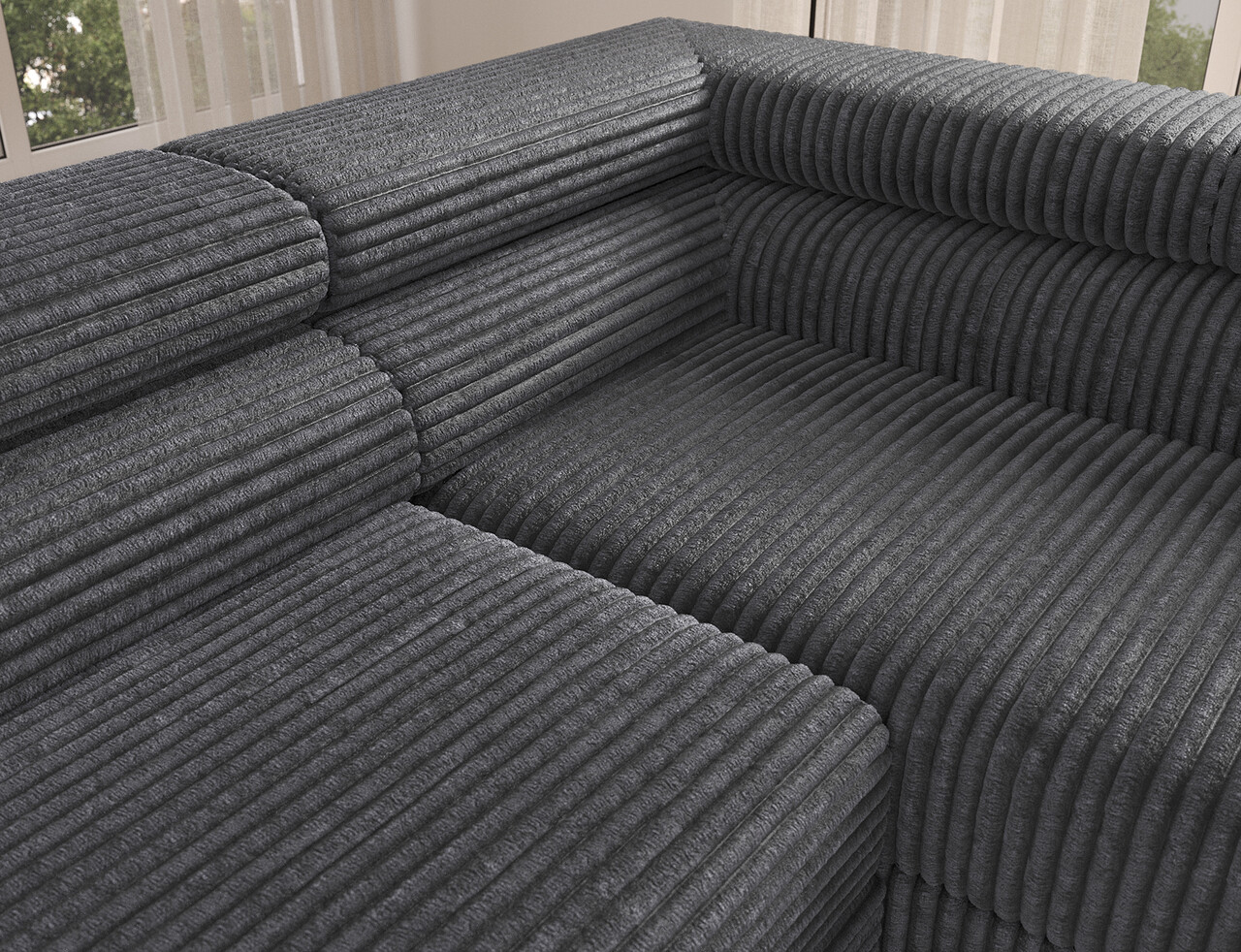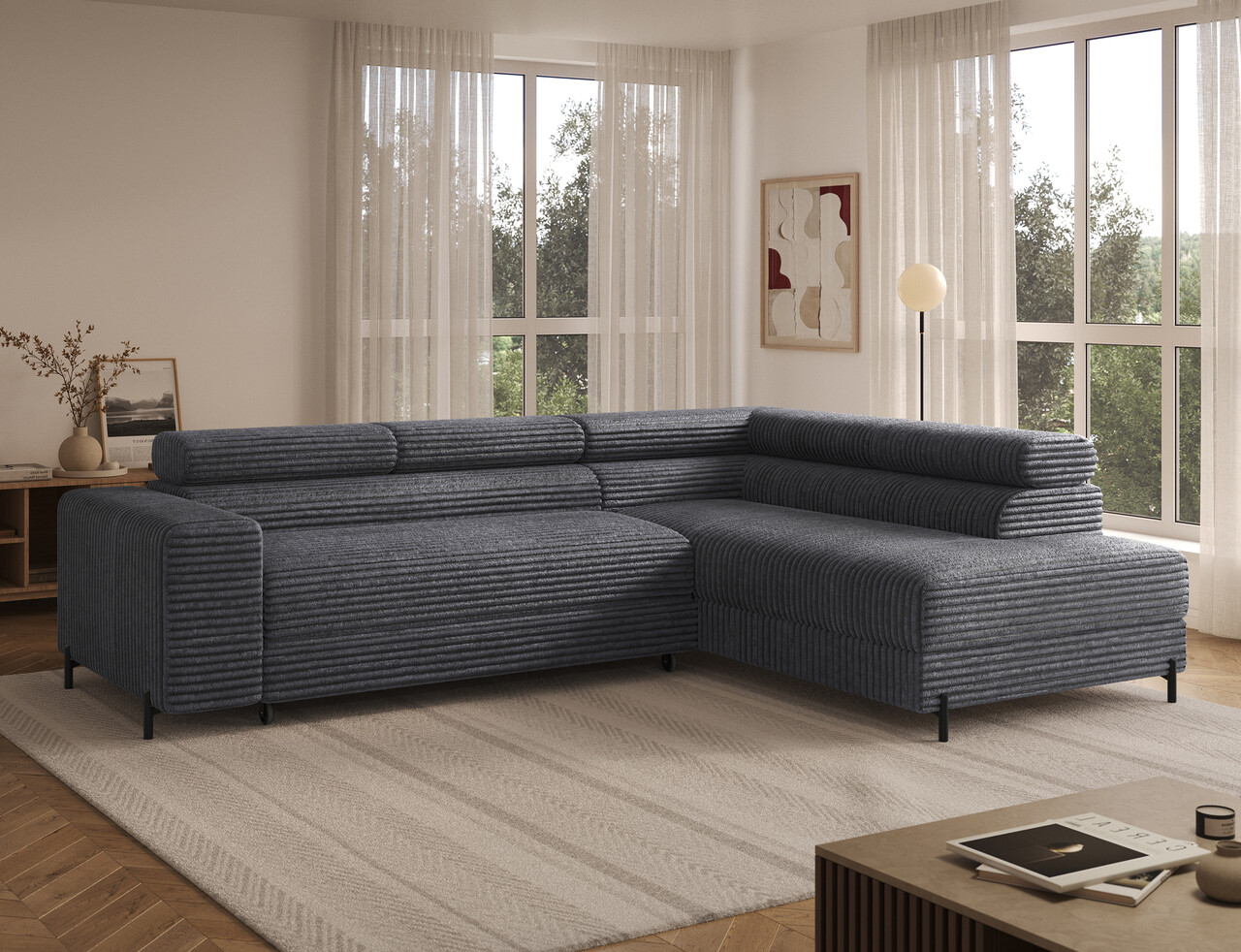 Coltar extensibil dreapta 5 locuri ELTAP, Colesio, 274x200x93 cm, lemn/poliester, gri inchis