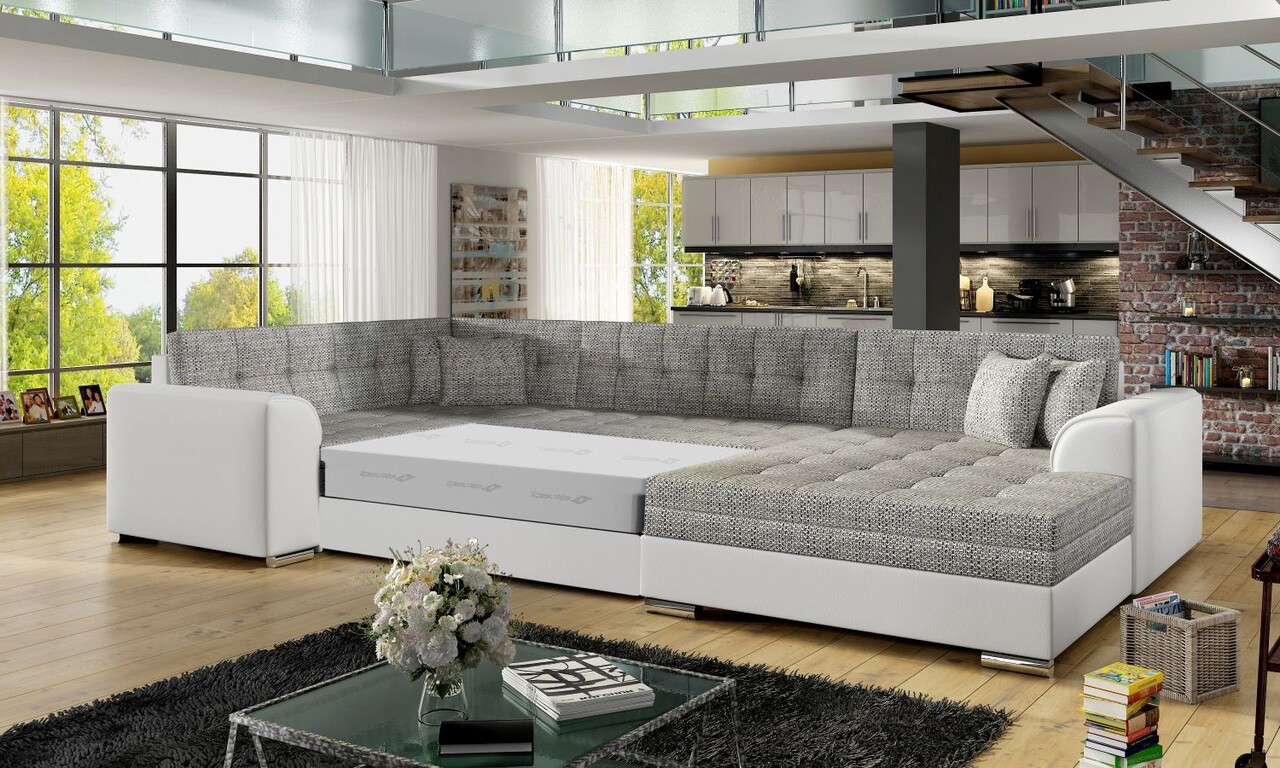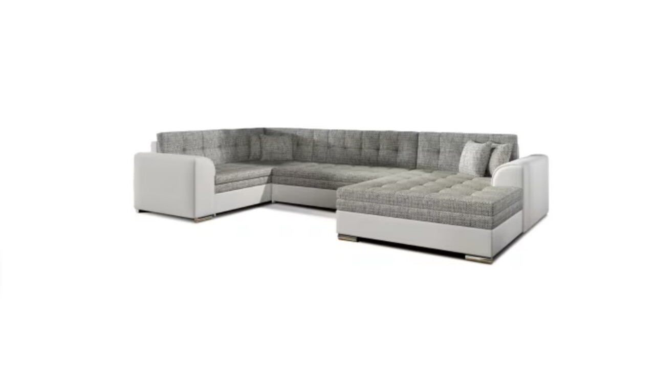 Coltar extensibil dreapta 5 locuri ELTAP, Damario, 338x189x78 cm, lemn/poliester, gri/alb