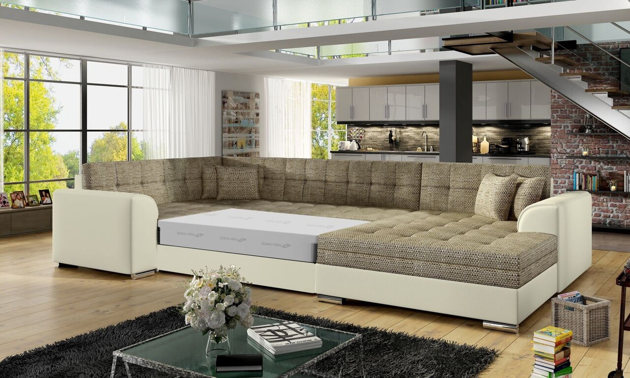 Coltar extensibil dreapta 5 locuri ELTAP, Damario, 338x189x78 cm, lemn/poliester, bej inchis/bej deschis