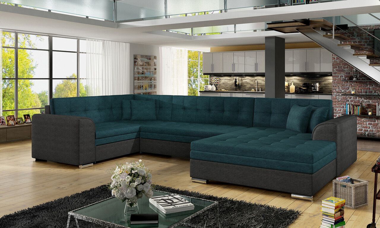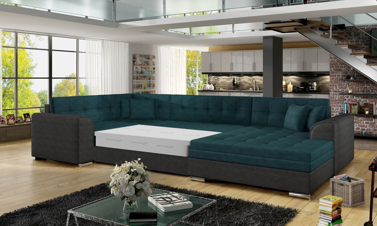 Coltar extensibil dreapta 5 locuri ELTAP, Damario, 338x189x78 cm, lemn/poliester, verde inchis/gri inchis