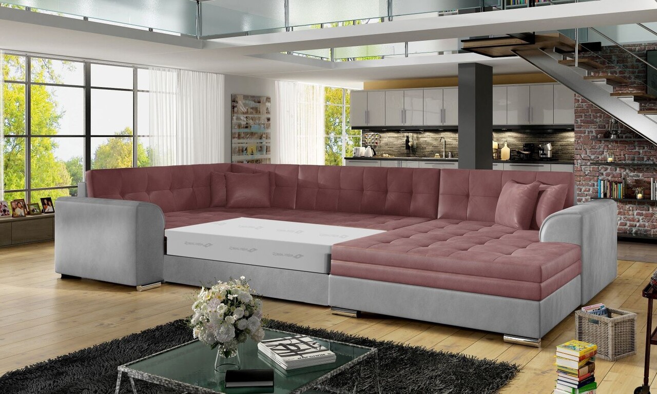 Coltar extensibil dreapta 5 locuri ELTAP, Damario, 338x189x78 cm, lemn/poliester, roz/gri