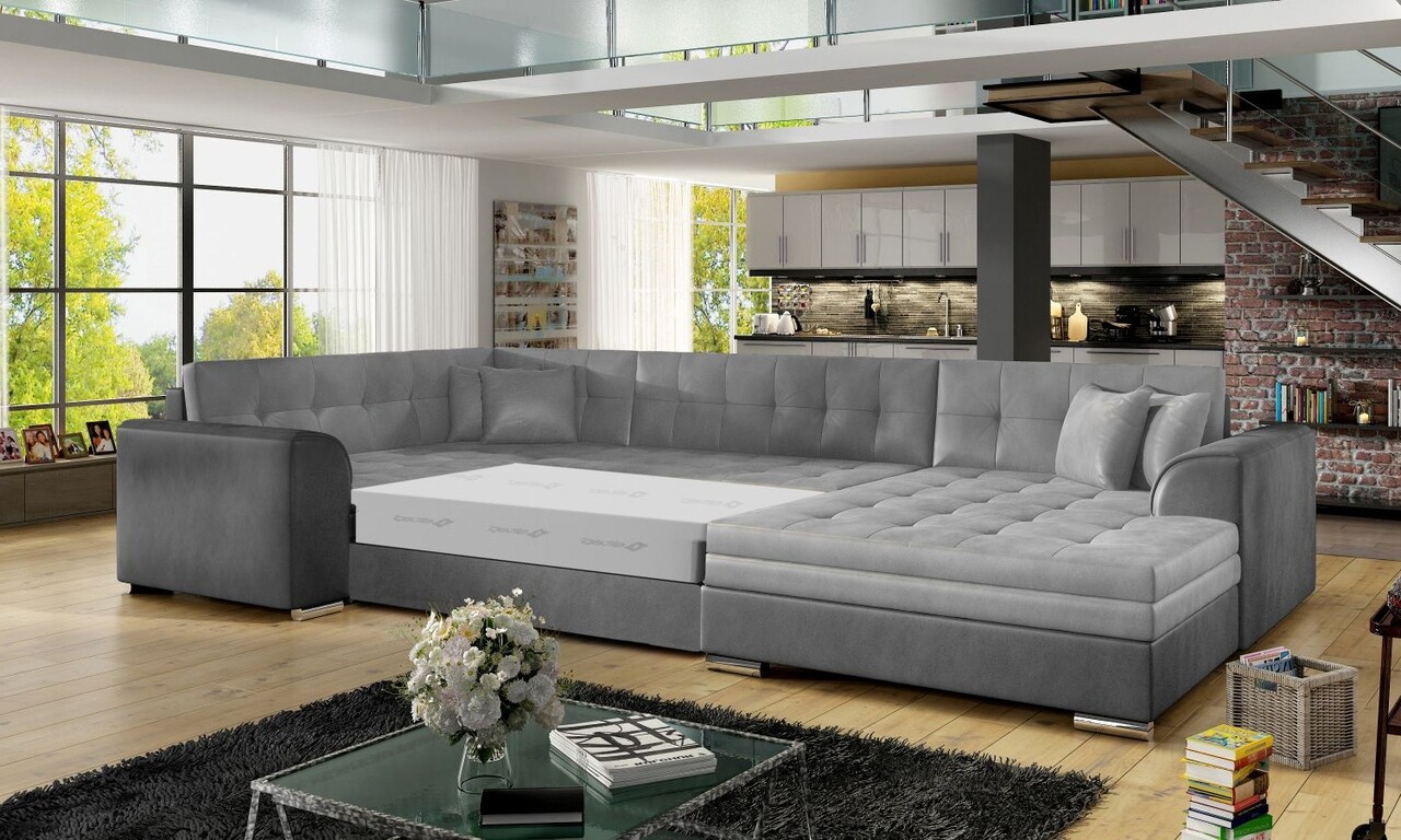 Coltar extensibil dreapta 5 locuri ELTAP, Damario, 338x189x78 cm, lemn/poliester, gri deschis/gri inchis