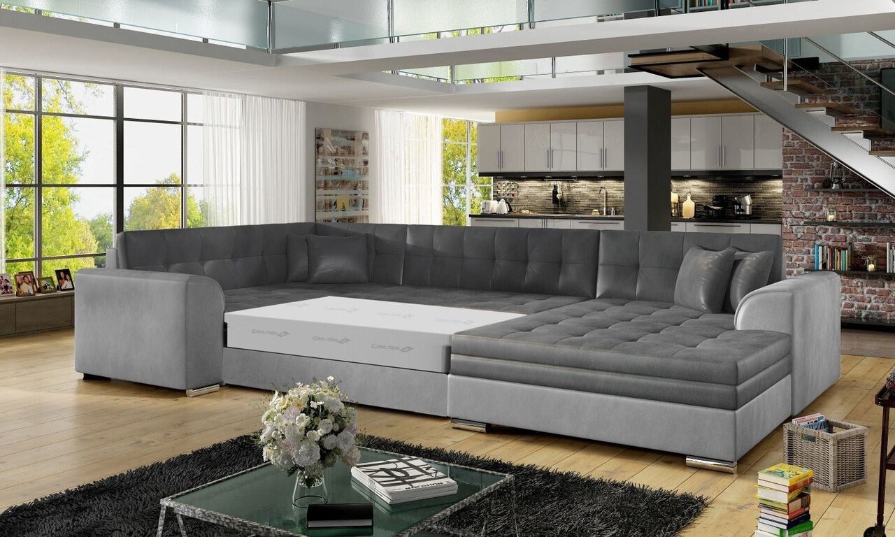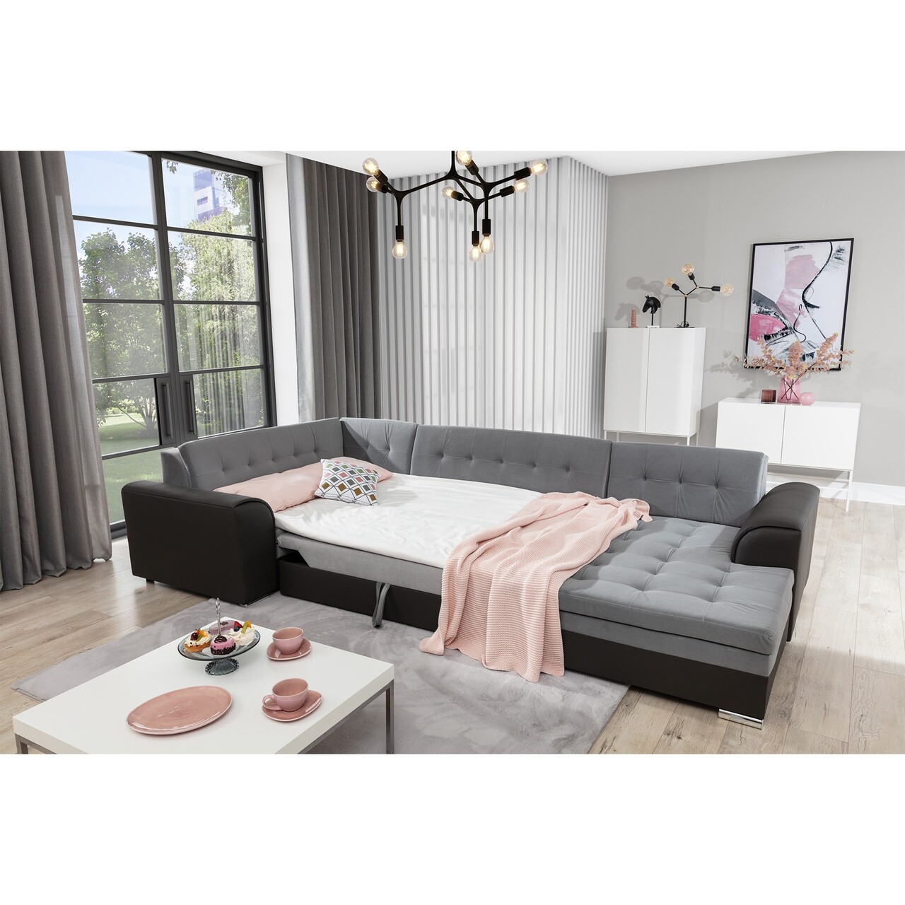 Coltar extensibil dreapta 5 locuri ELTAP, Damario, 338x189x78 cm, lemn/poliester, gri inchis/gri deschis