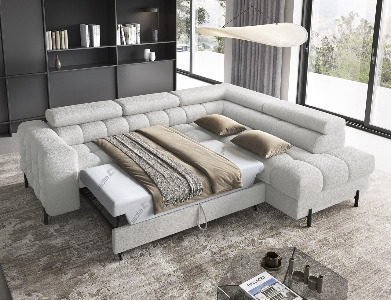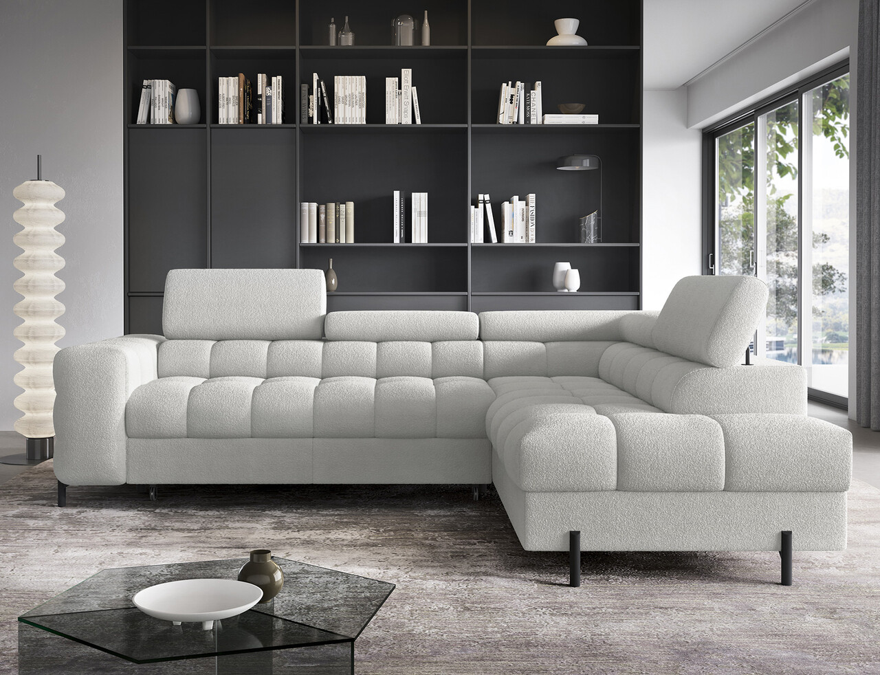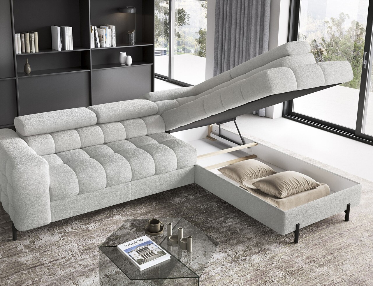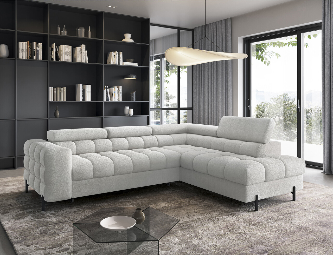 Coltar extensibil dreapta 5 locuri ELTAP, RT-03ROY, Ferucce, 276x200x93 cm, lemn/poliester, gri deschis