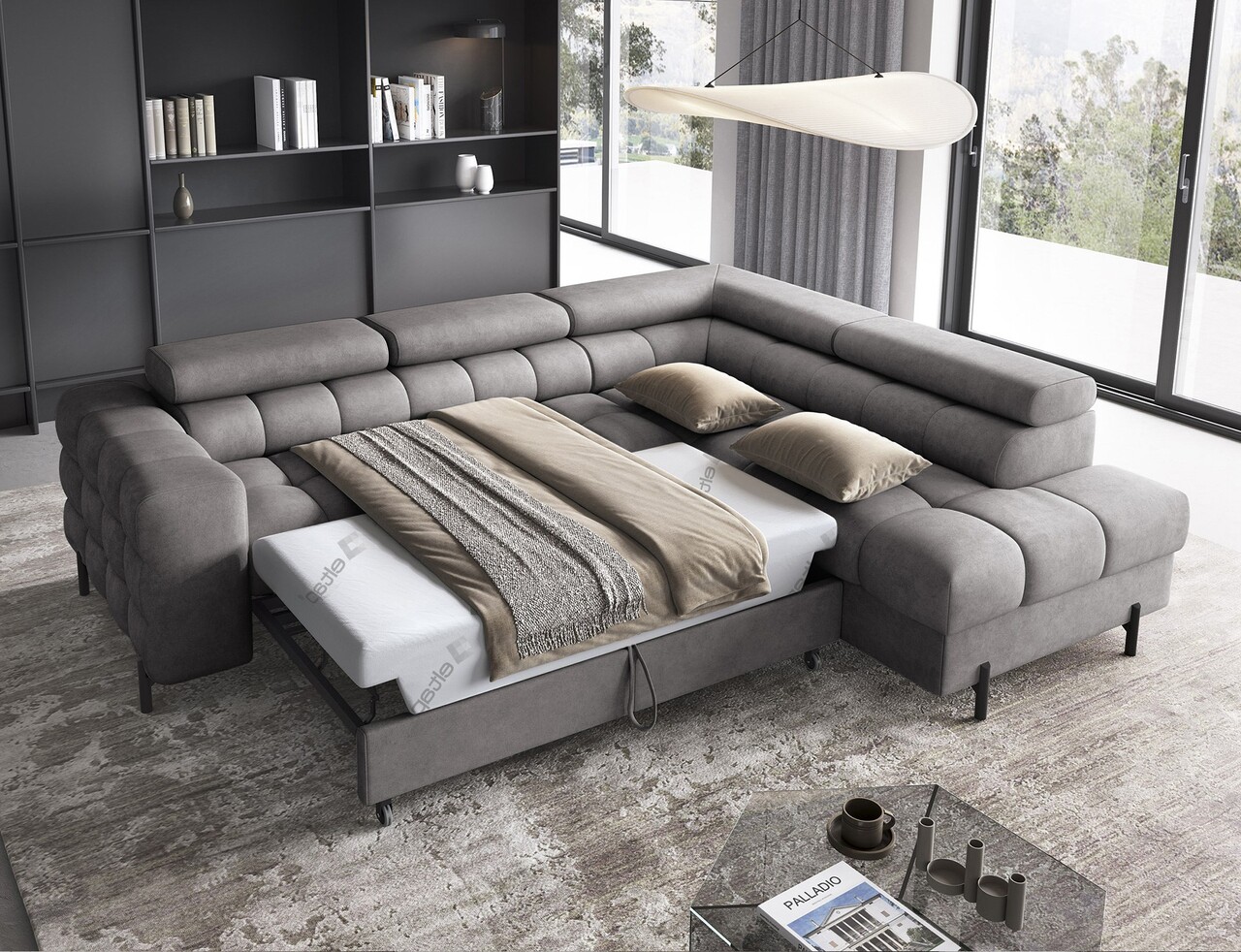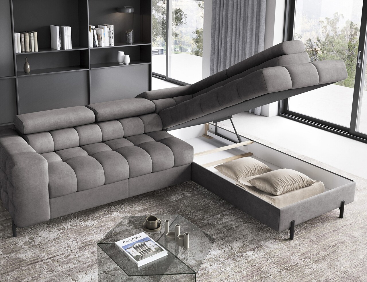 Coltar extensibil dreapta 5 locuri ELTAP, RT-04AU, Ferucce, 276x200x93 cm, lemn/poliester, gri