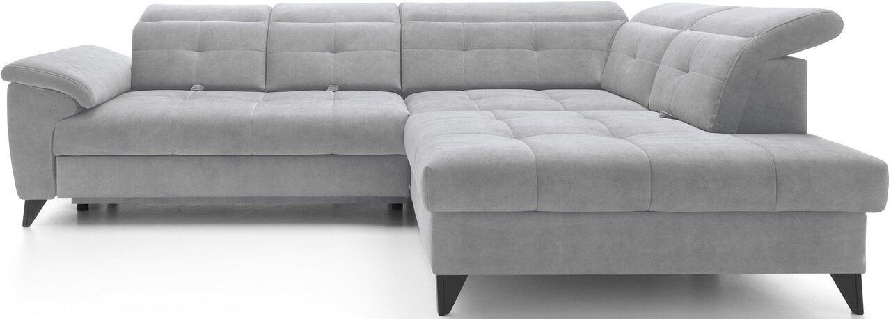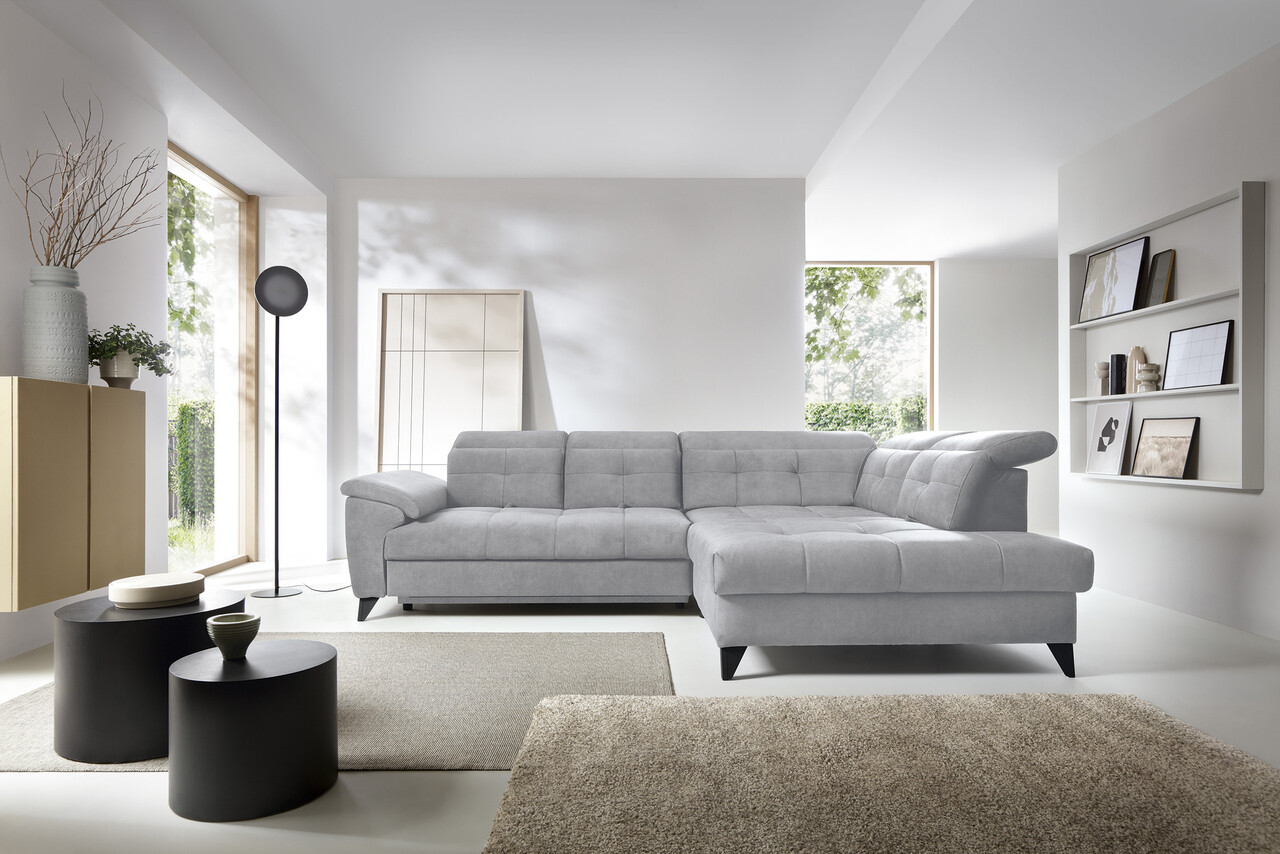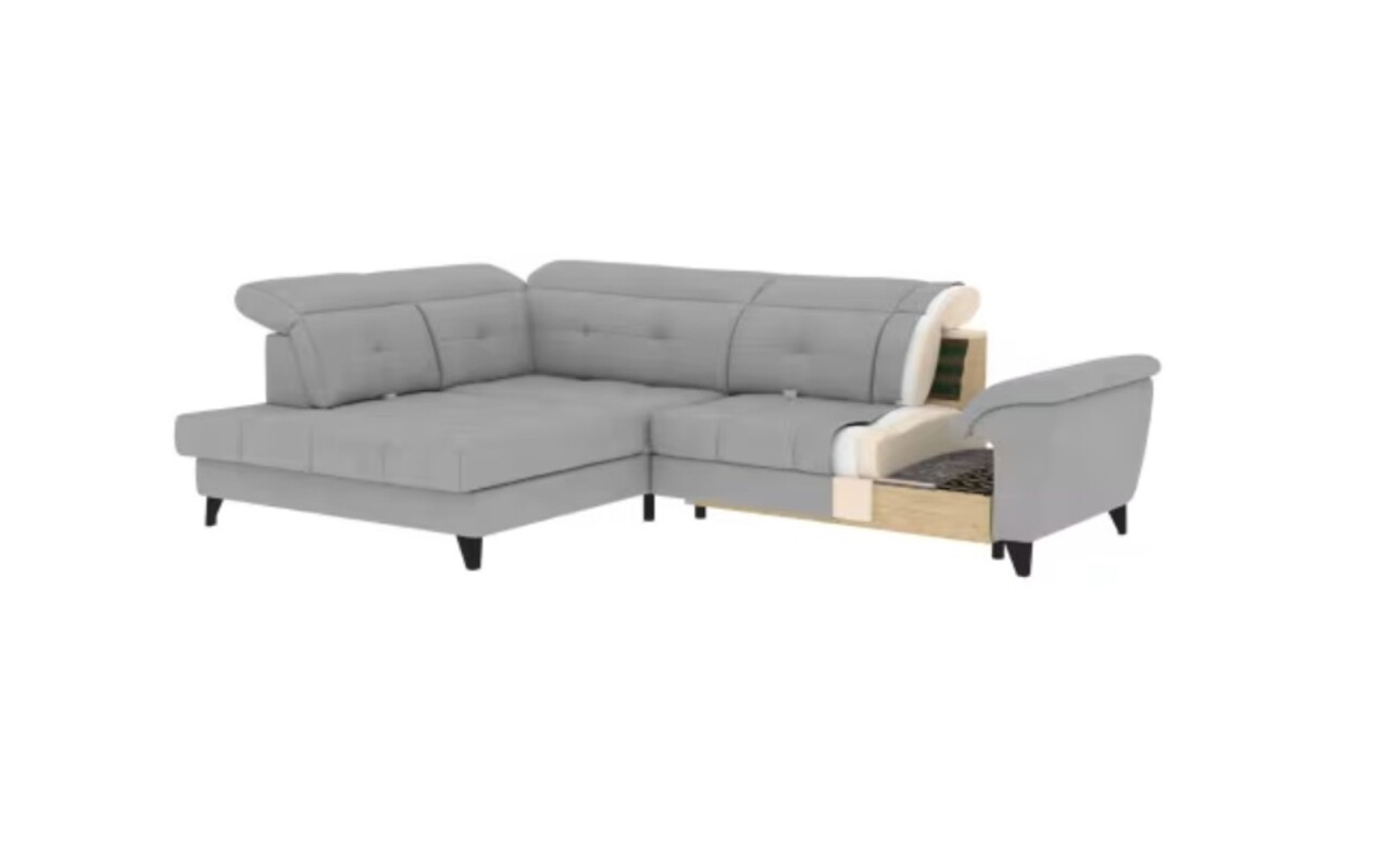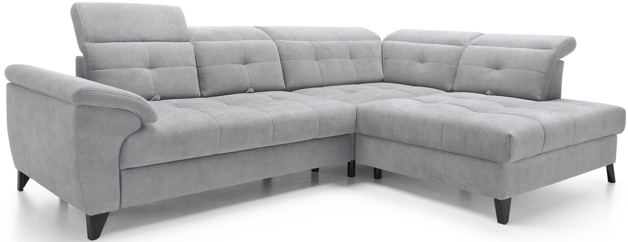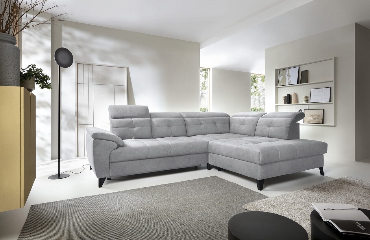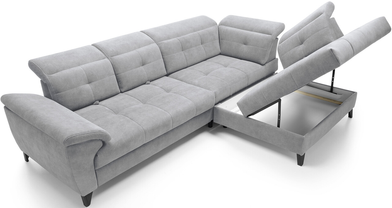 Coltarul Inferne este o piesa sofisticata de mobilier pentru living care imbina designul modern cu cea mai inalta calitate a componentelor, asigurand un confort de neuitat in utilizare. Echipat cu arcuri ondulate tip B si un sezut umplut cu spuma HR + T2130 foarte elastica, acest coltar ofera moliciune, flexibilitate si o potrivire perfecta cu forma anatomica a corpului, ceea ce se traduce printr-o relaxare profunda si detensionare musculara. Datorita utilizarii curelelor elastice de tapiterie si a spumei T2130 in spatar, coltarul Inferne se caracterizeaza prin durabilitate si rezistenta la deformare. Isi pastreaza aspectul original pentru multi ani, eliminand problema cutelor si pierderea formei. Mecanismul de extindere tip delfin, usor de manevrat, va permite sa transformi rapid coltarul intr-un pat confortabil, perfect atat pentru tine, cat si pentru oaspetii tai. In plus, coltarul Inferne este prevazut cu o lada de depozitare spatioasa pentru asternuturi, ascuns discret in interior. Este o solutie perfecta care ofera spatiu practic de depozitare pentru toate textilele dumneavoastra. Picioarele metalice negre adauga o nota moderna coltarului, subliniind eleganta acestei piese de mobilier. Finisarea atenta face din coltarul Inferne nu numai un element al unui interior confortabil, ci si un accent elegant in amenajarea camerei de zi. Coltaril Inferne este o armonie de lux, confort si functionalitate, creand un loc in camera de zi nu numai pentru a va relaxa, ci si pentru a va intalni cu familia si prietenii.