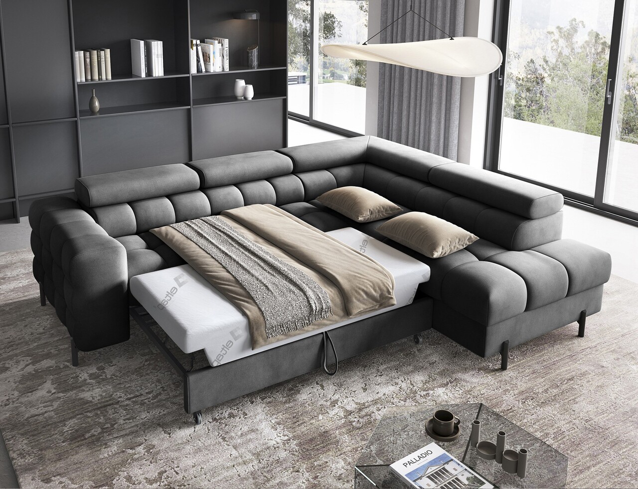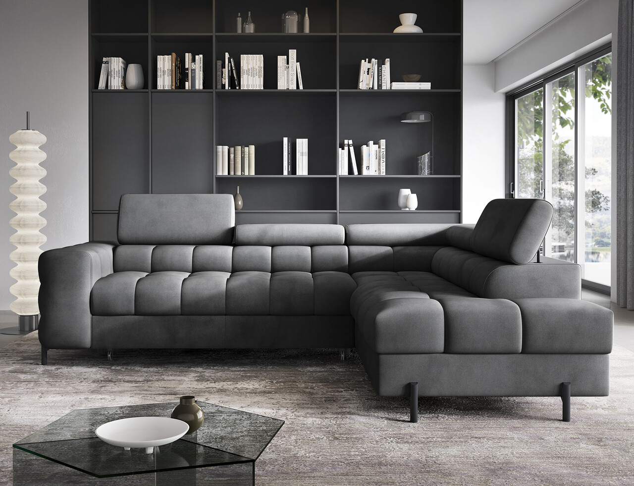 Coltar extensibil dreapta 5 locuri ELTAP, RT-06PA, Ferucce, 276x200x93 cm, lemn/poliester, gri inchis