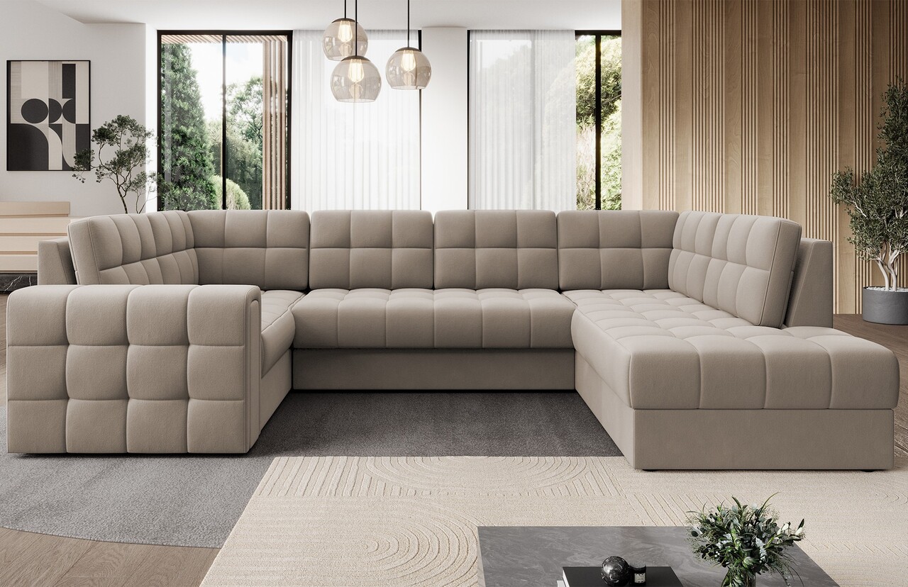Coltar extensibil dreapta 5 locuri ELTAP, RT-18SO, Blewett, 299x198x82 cm, lemn/poliester, bej inchis