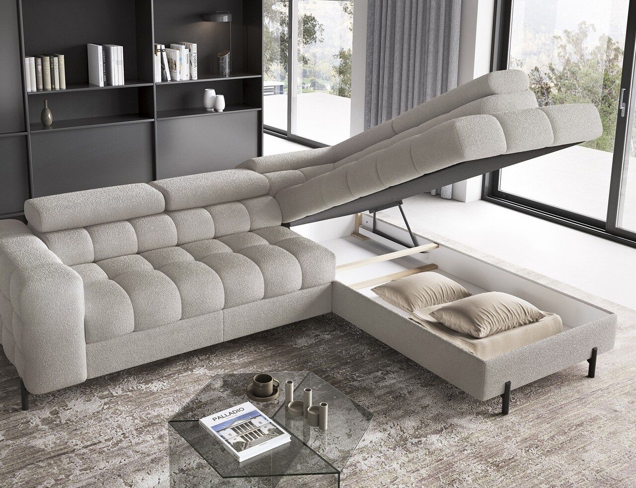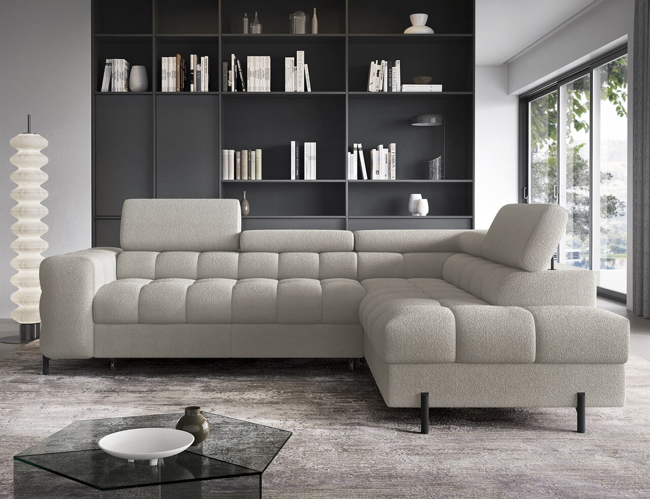 Coltar extensibil dreapta 5 locuri ELTAP, RT-20ROY, Ferucce, 276x200x93 cm, lemn/poliester, bej deschis