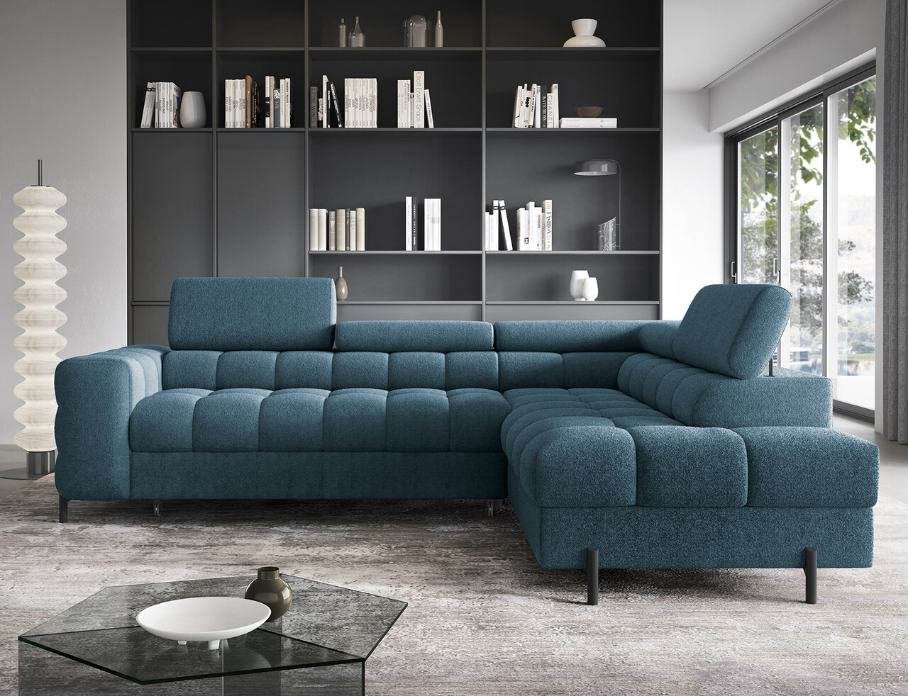 Coltar extensibil dreapta 5 locuri ELTAP, RT-40AMO, Ferucce, 276x200x93 cm, lemn/poliester, albastru