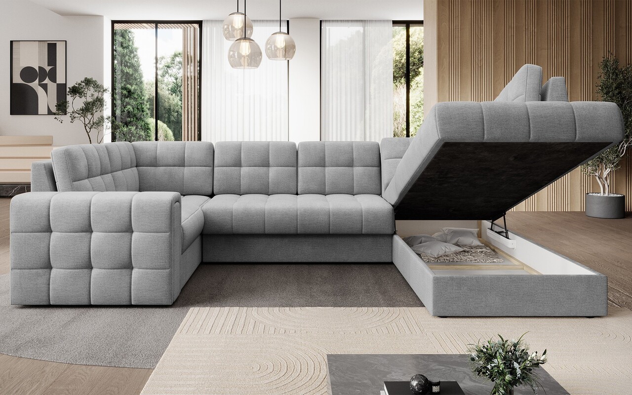 Coltar extensibil dreapta 5 locuri ELTAP, RT-85MO, Blewett, 299x198x82 cm, lemn/poliester, gri deschis