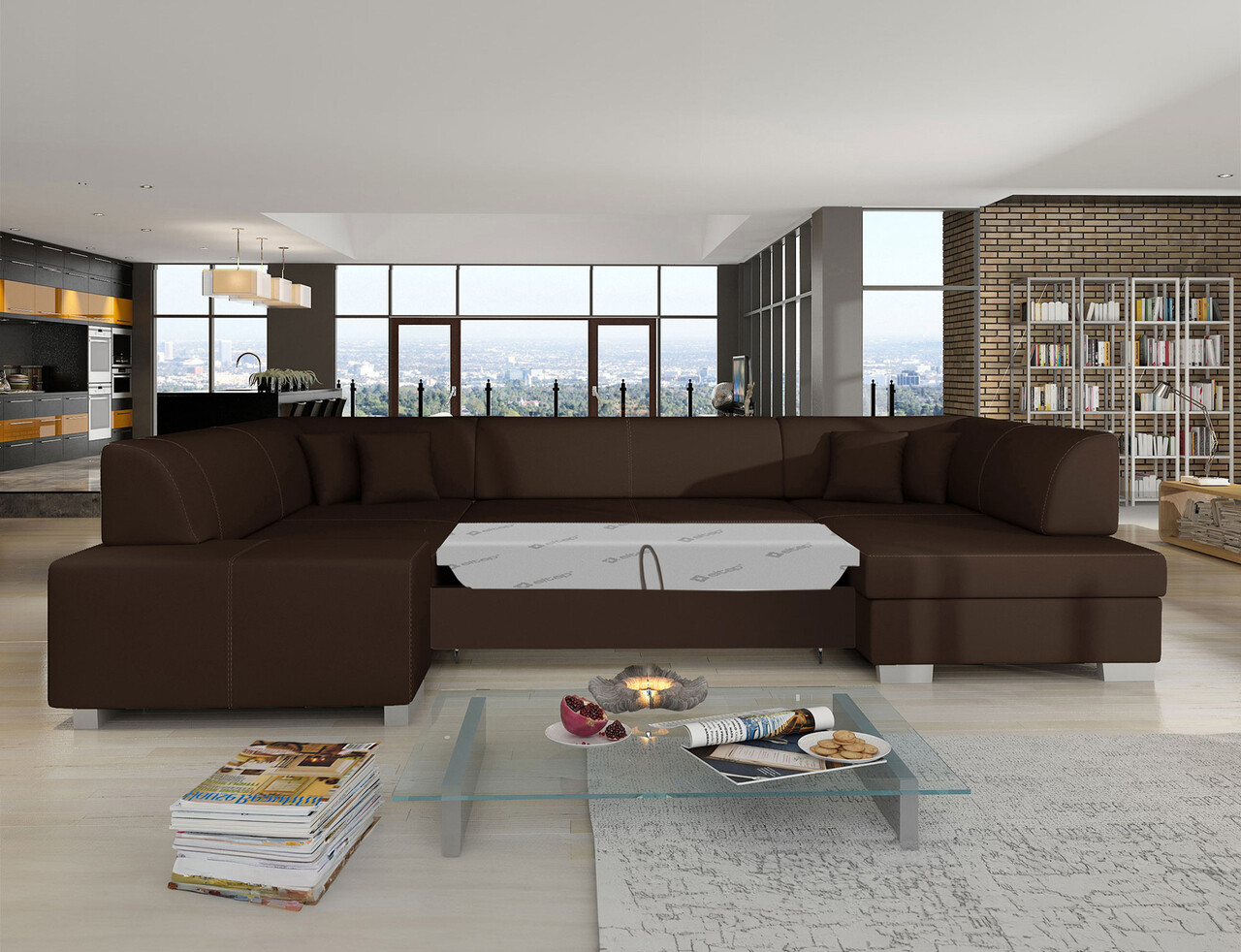 Coltar extensibil dreapta 6 locuri ELTAP, Hv11, Havana, 322x204x72 cm, lemn/poliester, maro