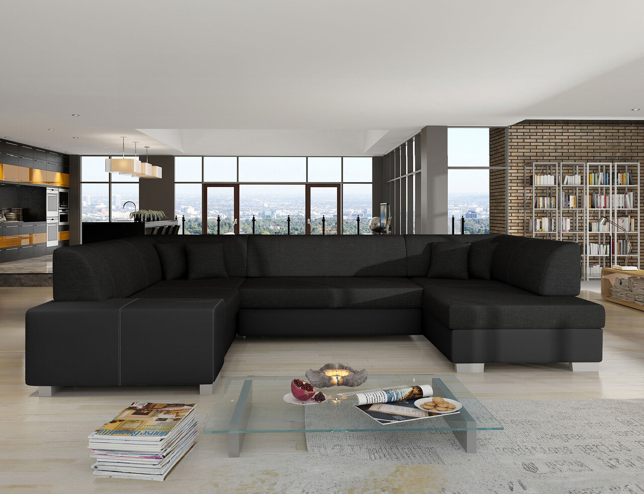 Coltar extensibil dreapta 6 locuri ELTAP, Hv43, Havana, 322x204x72 cm, lemn/poliester, negru