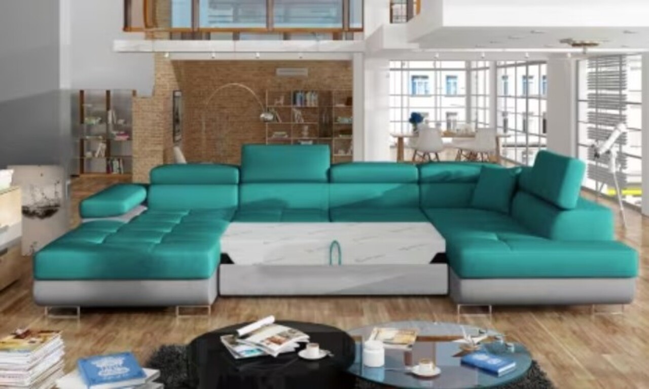 Coltar extensibil dreapta 6 locuri ELTAP, Rod-05, Rodrigo, 345x202x90 cm, lemn/poliester, albastru/gri