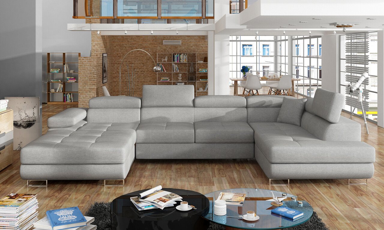 Coltar extensibil dreapta 6 locuri ELTAP, Rod-27, Rodrigo, 345x202x90 cm, lemn/poliester, gri deschis