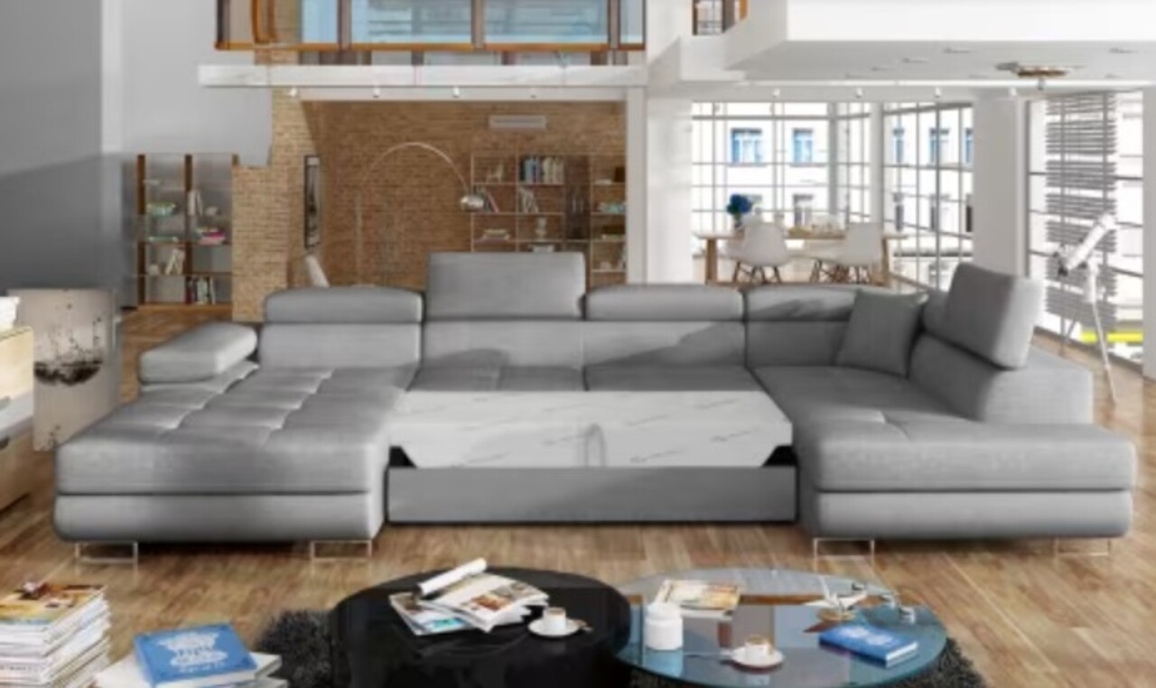 Coltar extensibil dreapta 6 locuri ELTAP, Rod-29, Rodrigo, 345x202x90 cm, lemn/poliester, gri deschis