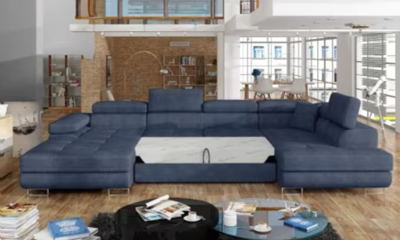 Coltar extensibil dreapta 6 locuri ELTAP, Rod-31, Rodrigo, 345x202x90 cm, lemn/poliester, albastru