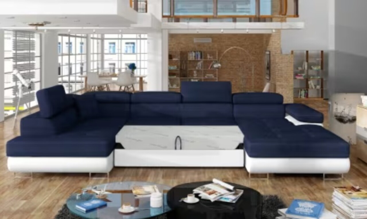 Coltar extensibil dreapta 6 locuri ELTAP, Rod-41, Rodrigo, 345x202x90 cm, lemn/poliester, albastru inchis/alb