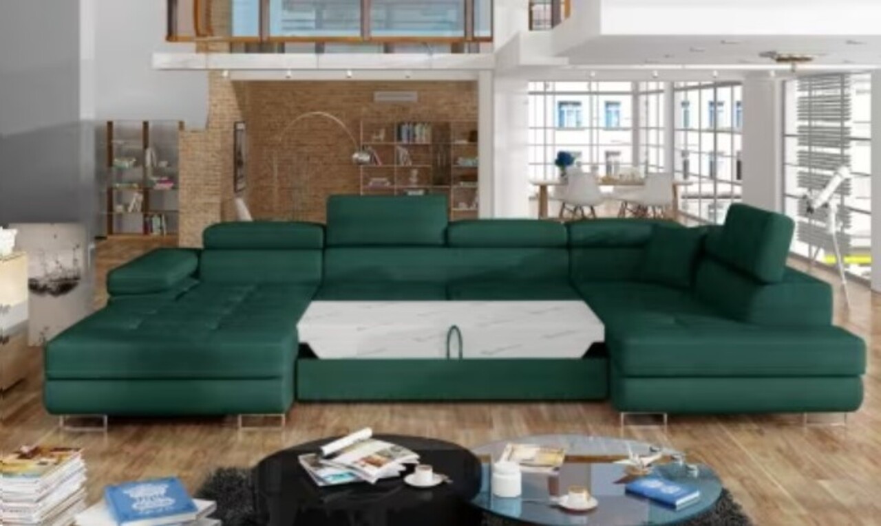 Coltar extensibil dreapta 6 locuri ELTAP, Rod-42, Rodrigo, 345x202x90 cm, lemn/poliester, verde inchis