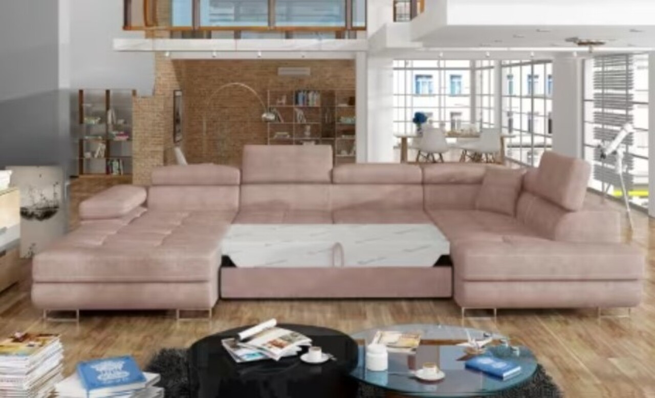 Coltar extensibil dreapta 6 locuri ELTAP, Rod-43, Rodrigo, 345x202x90 cm, lemn/poliester, roz deschis