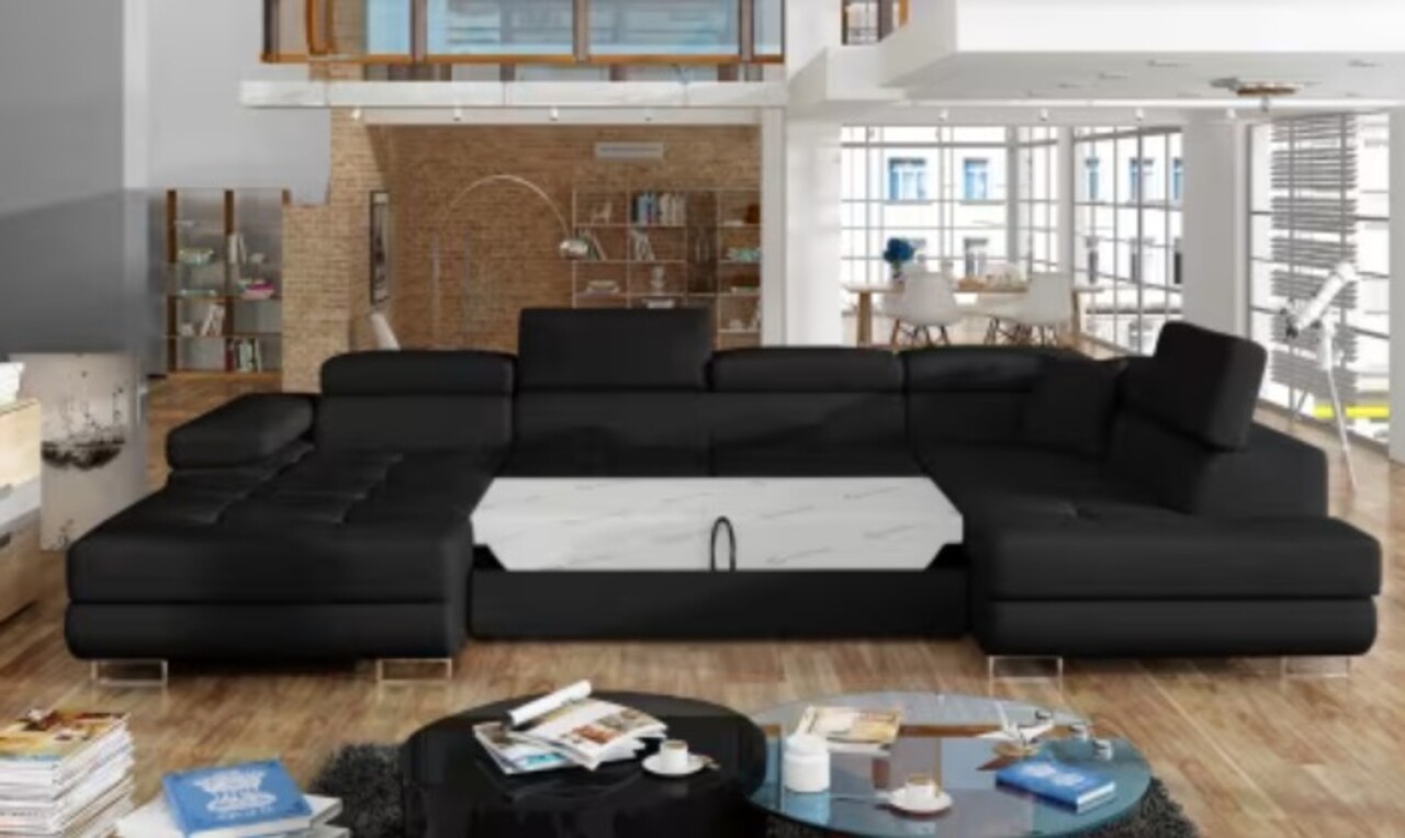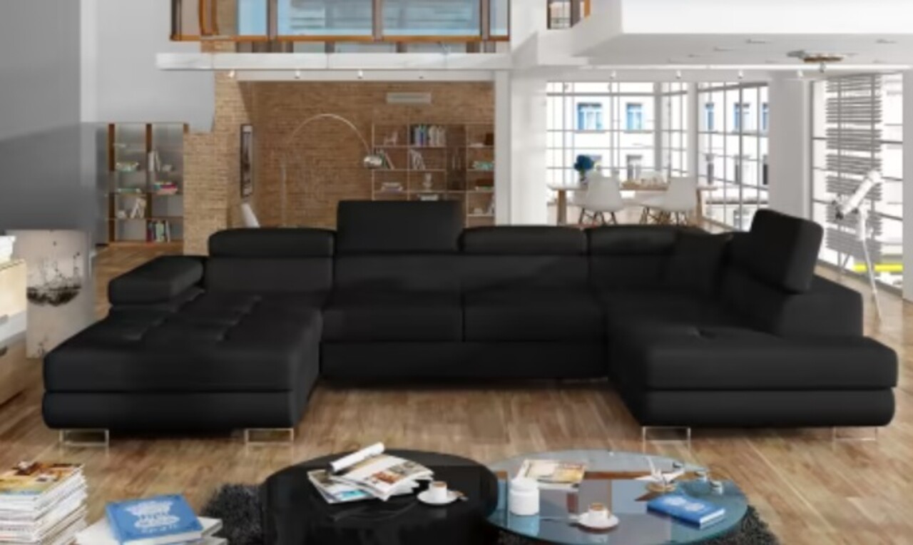 Coltar extensibil dreapta 6 locuri ELTAP, Rod-57, Rodrigo, 345x202x90 cm, lemn/poliester, negru