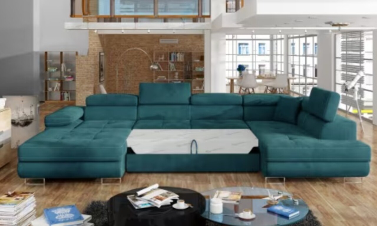 Coltar extensibil dreapta 6 locuri ELTAP, Rod-63, Rodrigo, 345x202x90 cm, lemn/poliester, verde