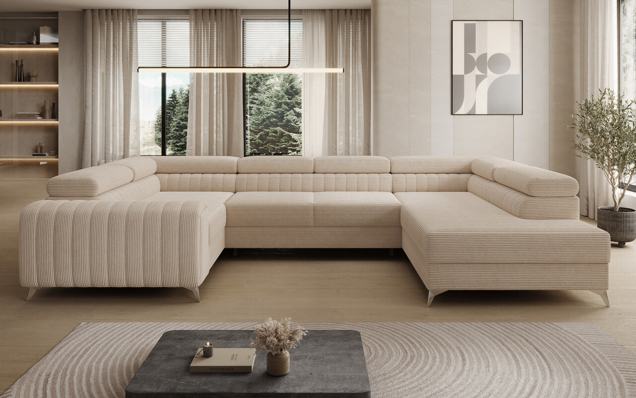 Coltar extensibil dreapta 6 locuri ELTAP, RT-18JAR, Louis, 347x202x92 cm, lemn/poliester, bej deschis