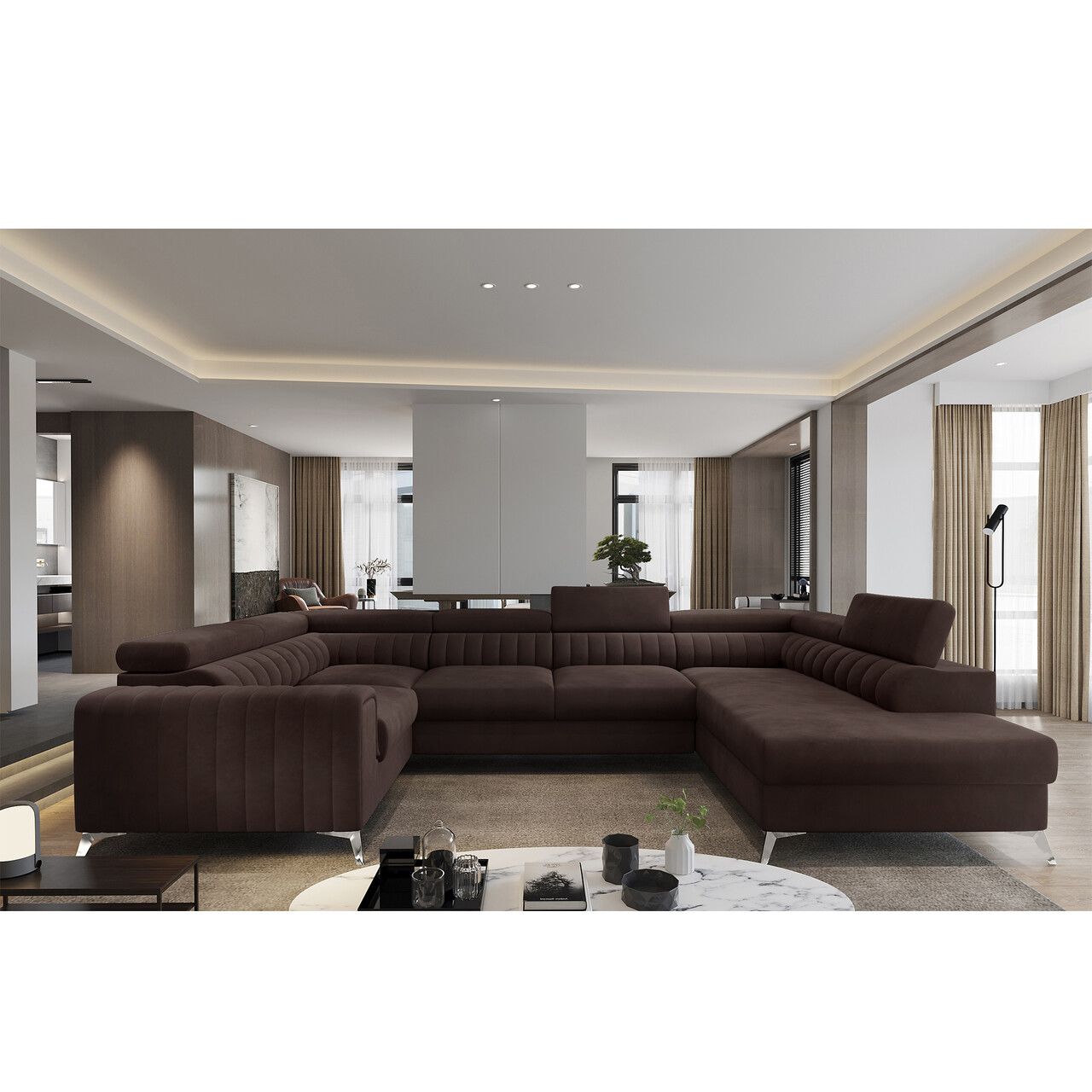 Coltar extensibil dreapta 6 locuri ELTAP, RT-22NU, Louis, 347x202x92 cm, lemn/poliester, maro inchis