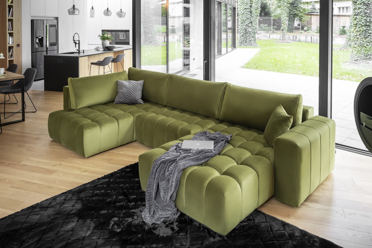 Coltar extensibil dreapta 6 locuri ELTAP, RT-33LO, Bonito, 350x175x92 cm, lemn/poliester, verde olive