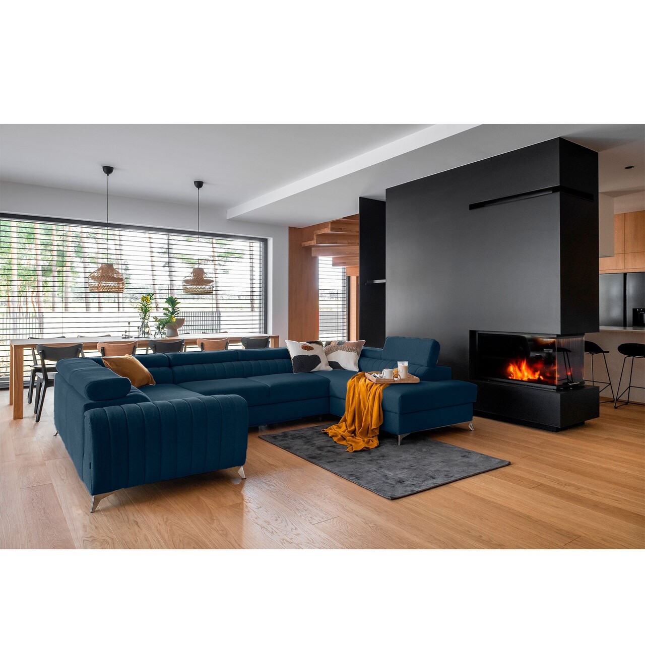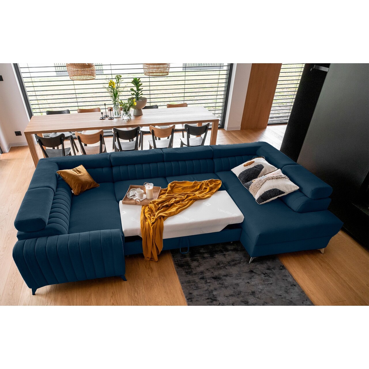 Coltar extensibil dreapta 6 locuri ELTAP, RT-40FL, Louis, 347x202x92 cm, lemn/poliester, albastru inchis