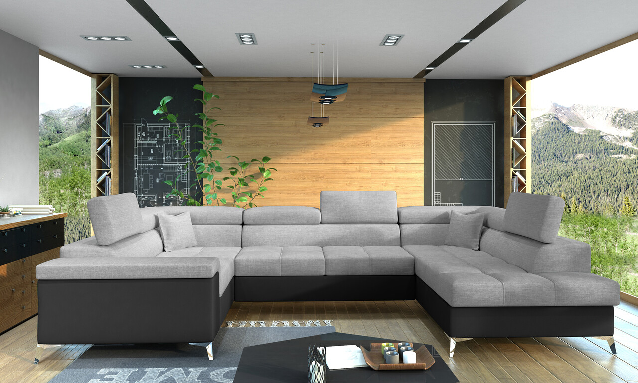 Coltar extensibil dreapta 6 locuri ELTAP, Th-09, Thiago, 342x208x88 cm, lemn/poliester, gri deschis/negru