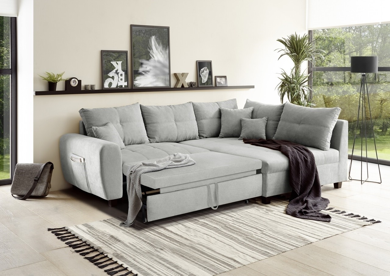Coltar extensibil dreapta Lea Schlamm, 3 locuri, 248 x 87 x 176 cm, PAL/lemn/poliester, gri