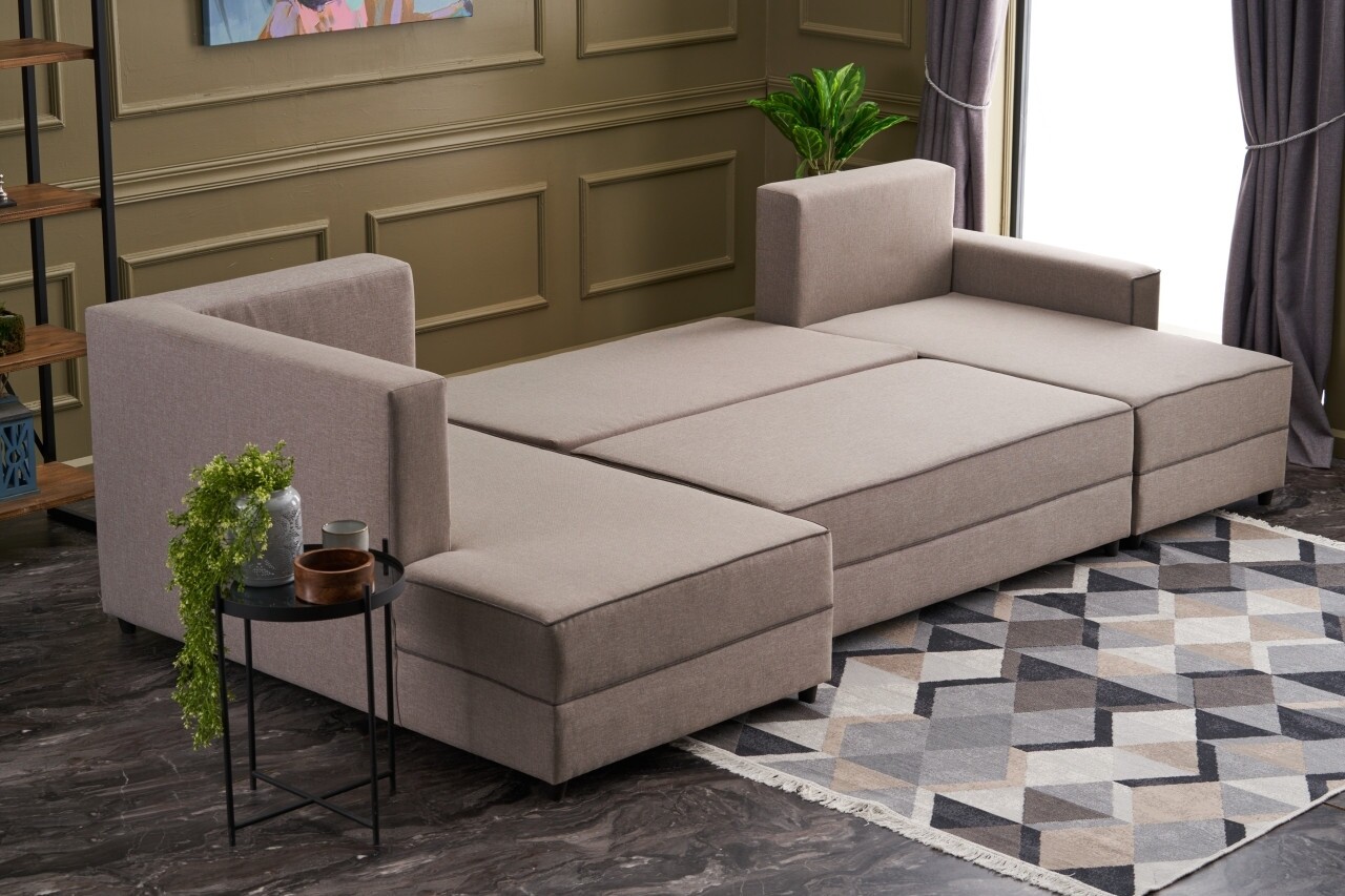 Coltar extensibil Ece Panoramik, Balcab Home, 315x90x88 cm, lemn, crem