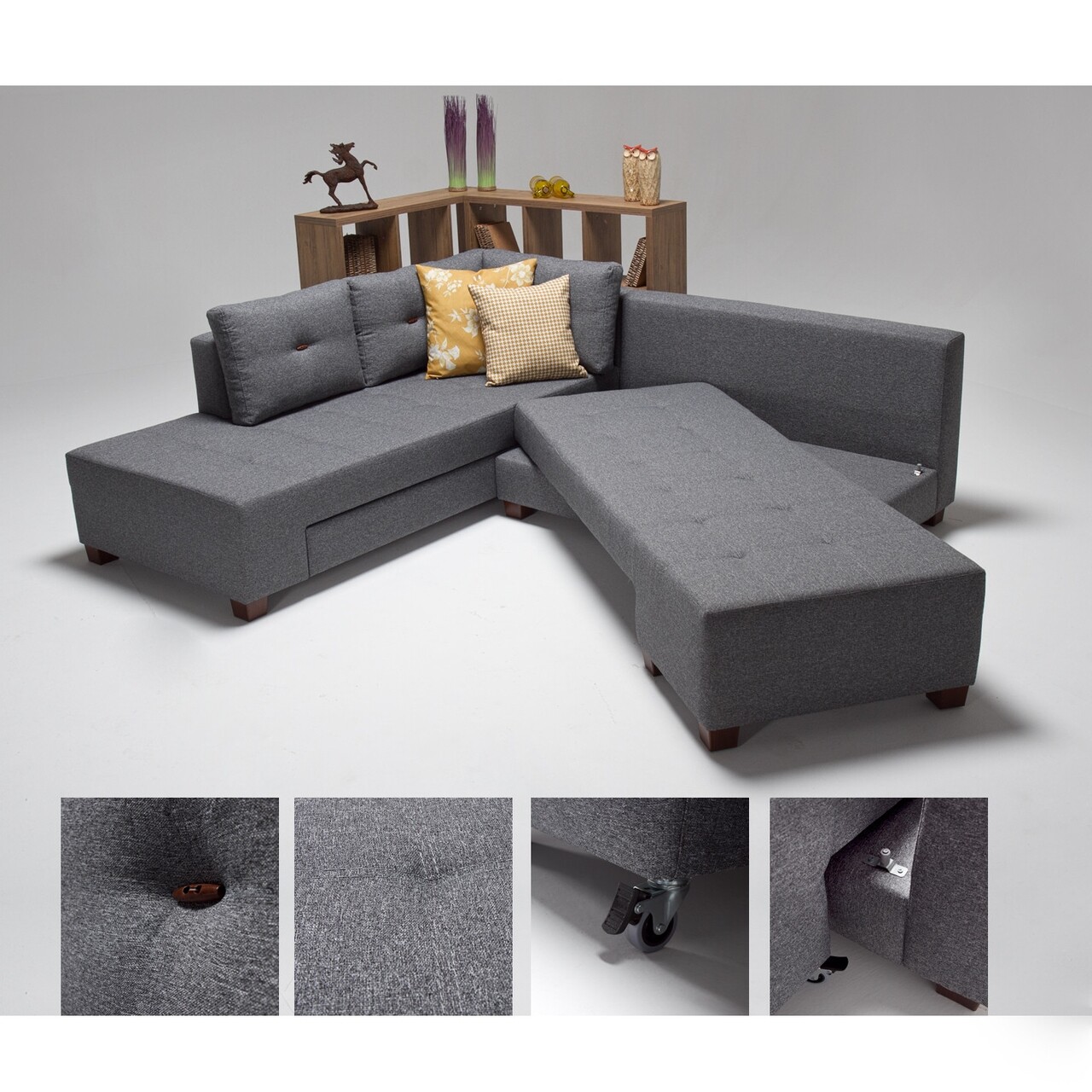 Coltarul se extinde cu ajutorul unui sistem click clack si formeaza o suprafata de dormit de 190x140 cm. Aceasta are o structura din lemn masiv de fag si metal. Sezutu si spatarul sunt compuse din spuma (32 DNS).