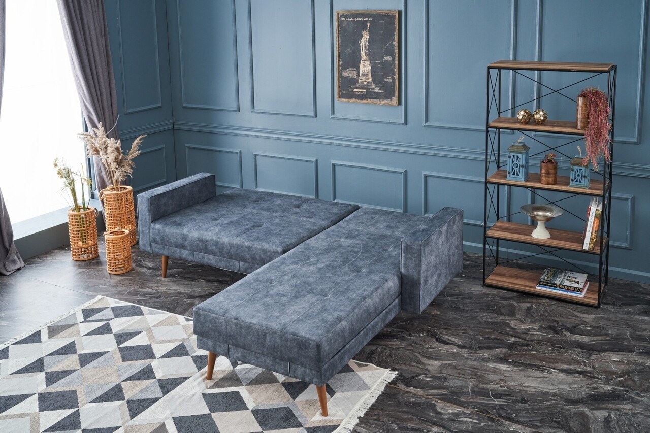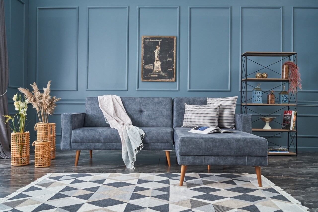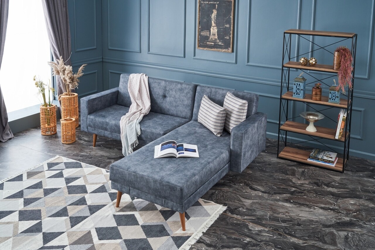 Coltar extensibil pe dreapta Dublin, Balcab Home, 230x75x90 cm, lemn, albastru