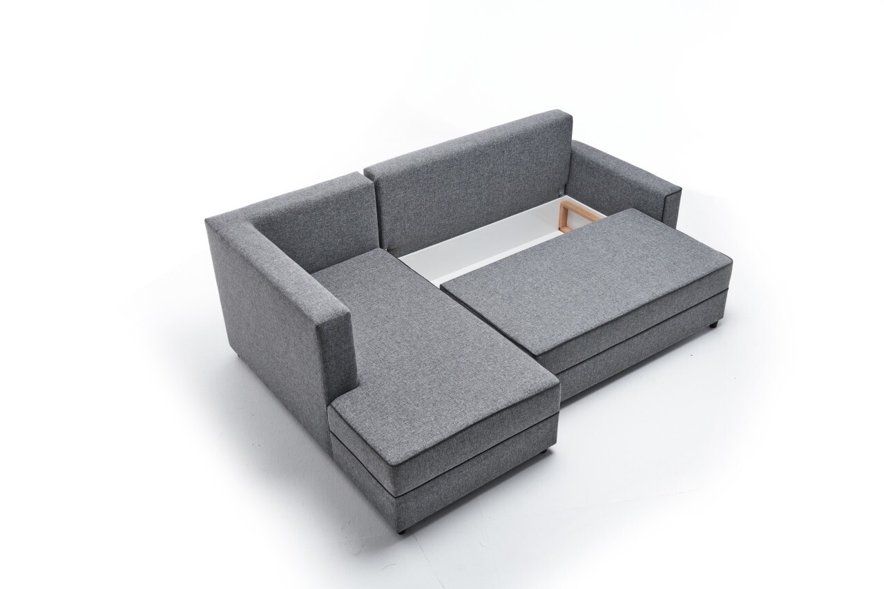 Coltar extensibil pe stanga Ece, Balcab Home, 242x90x88 cm, lemn, gri