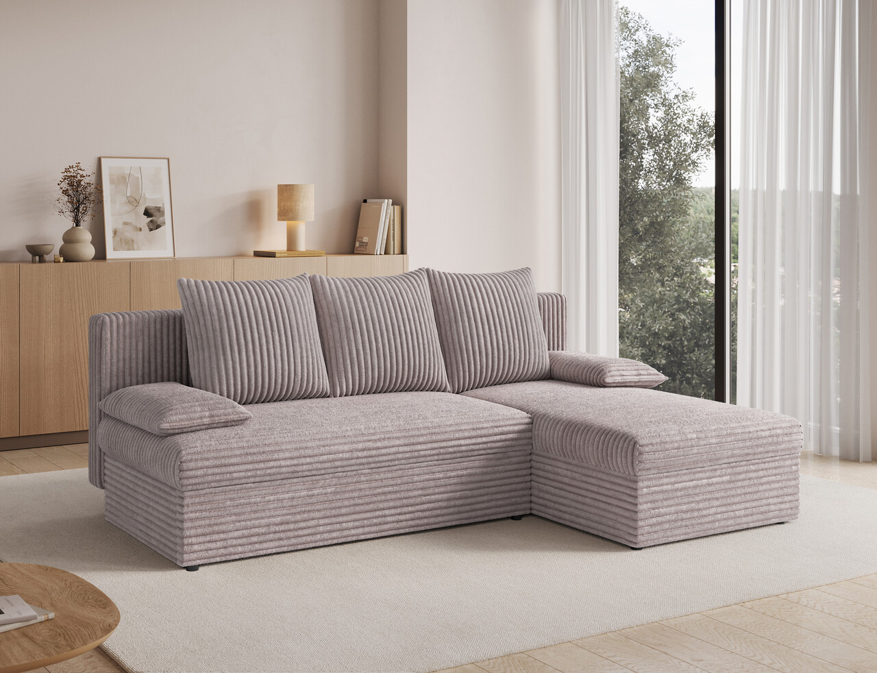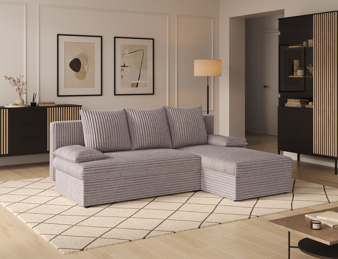 Coltar extensibil reversibil 3 locuri ELTAP, 03MOD, Gino, 201x143x90 cm, lemn/poliester, gri