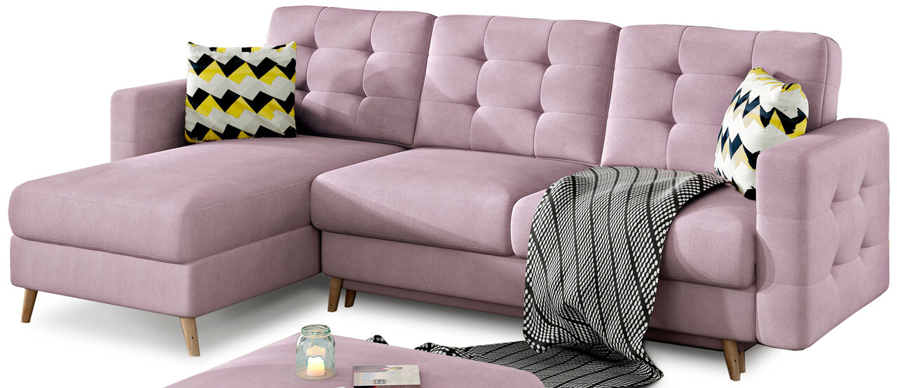 Coltar extensibil reversibil 3 locuri ELTAP, AsgL-09, Asgard, 248x162x93 cm, lemn/poliester, roz deschis