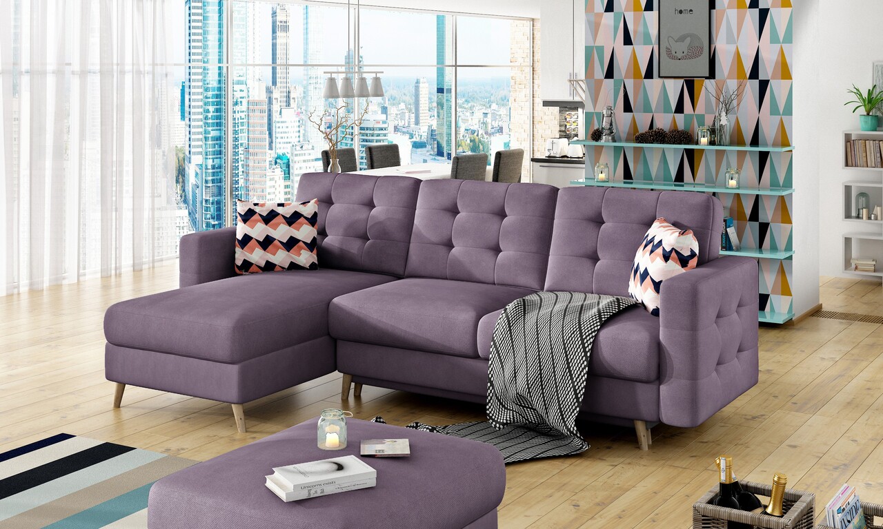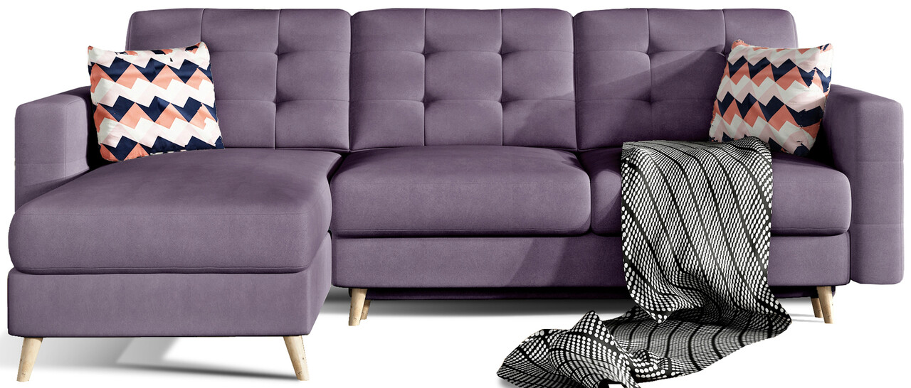 Coltar extensibil reversibil 3 locuri ELTAP, AsgL-10, Asgard, 248x162x93 cm, lemn/poliester, violet
