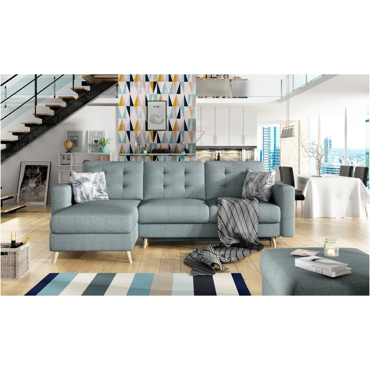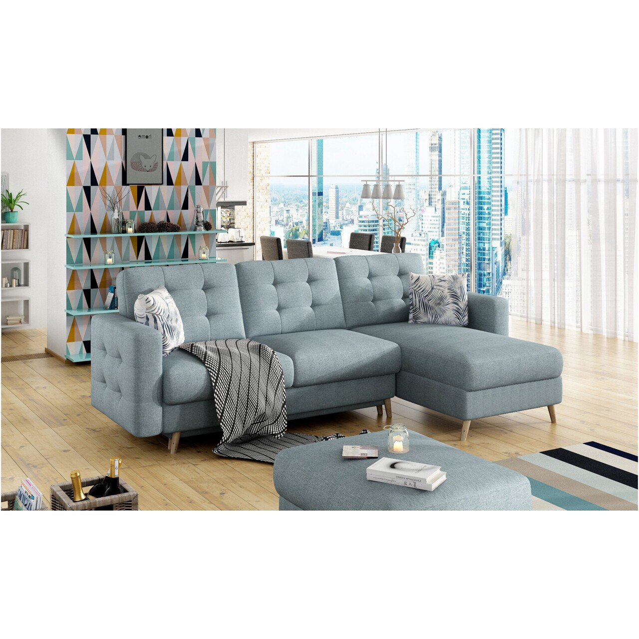 Coltar extensibil reversibil 3 locuri ELTAP, AsgL-16, Asgard, 248x162x93 cm, lemn/poliester, verde deschis