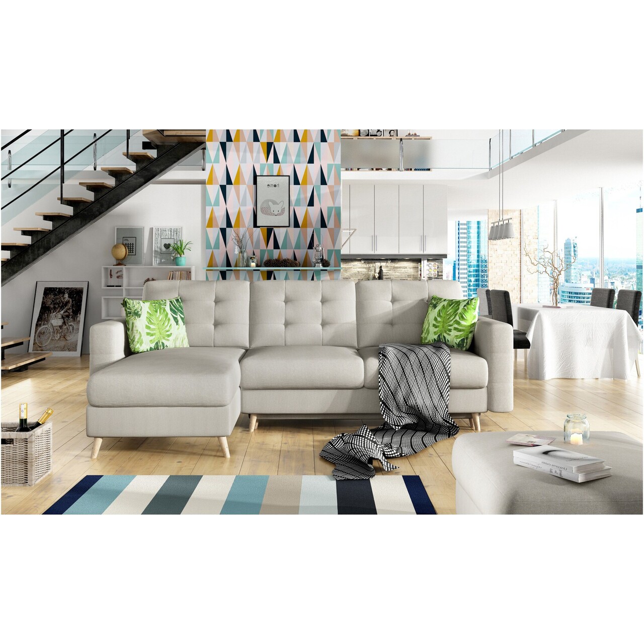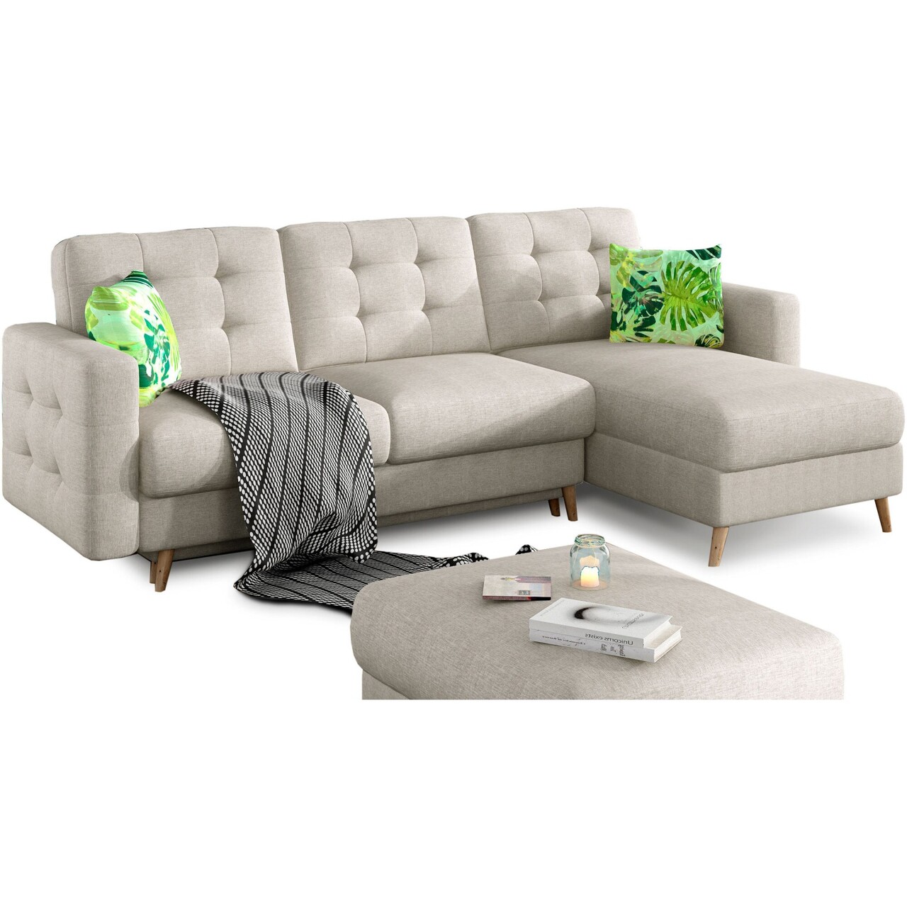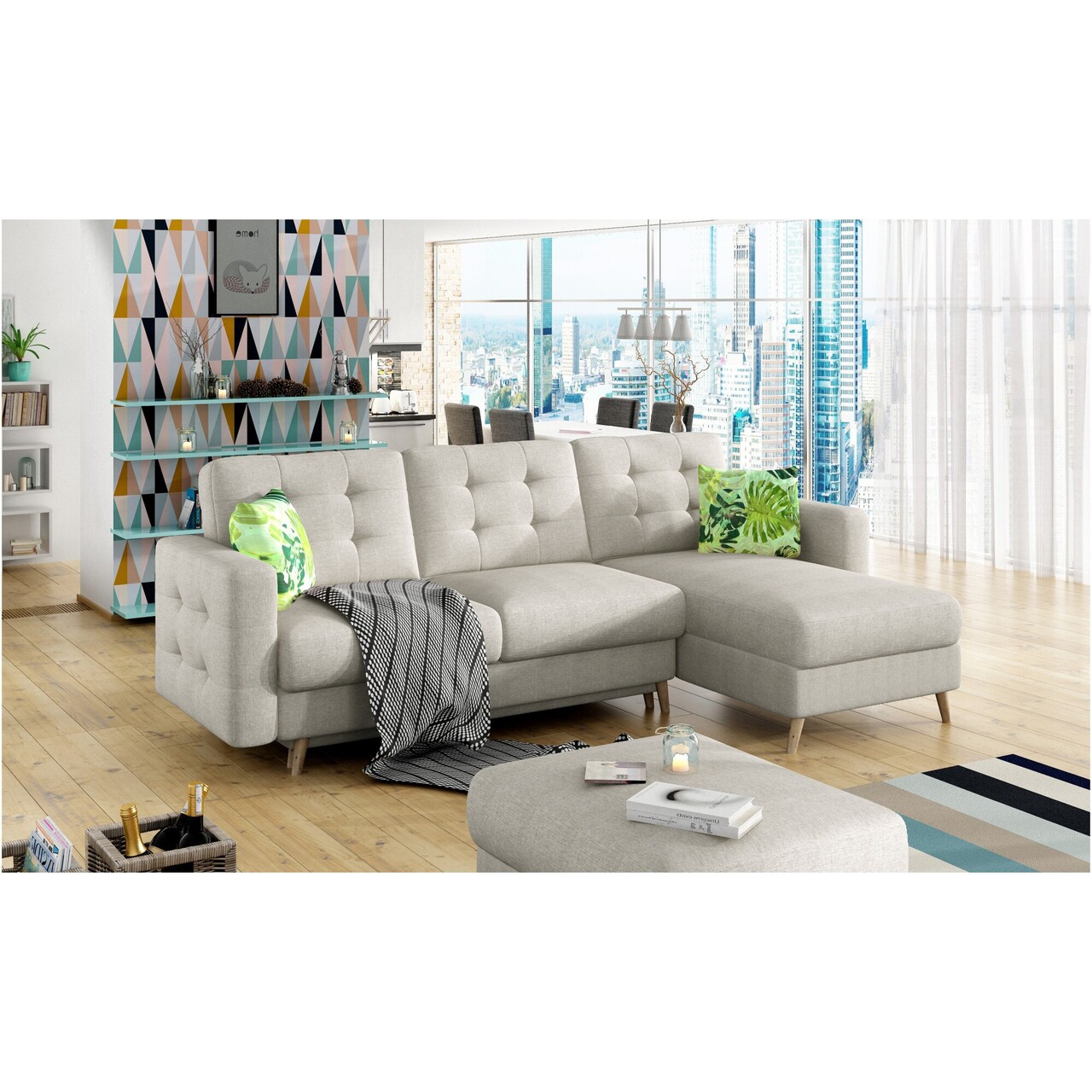 Coltar extensibil reversibil 3 locuri ELTAP, AsgL-18, Asgard, 248x162x93 cm, lemn/poliester, bej deschis