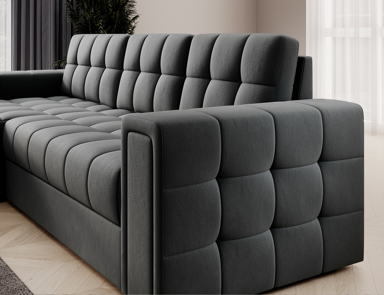 Coltar extensibil reversibil 3 locuri ELTAP, Blenvi, 260x150x82 cm, lemn/poliester, gri antracit