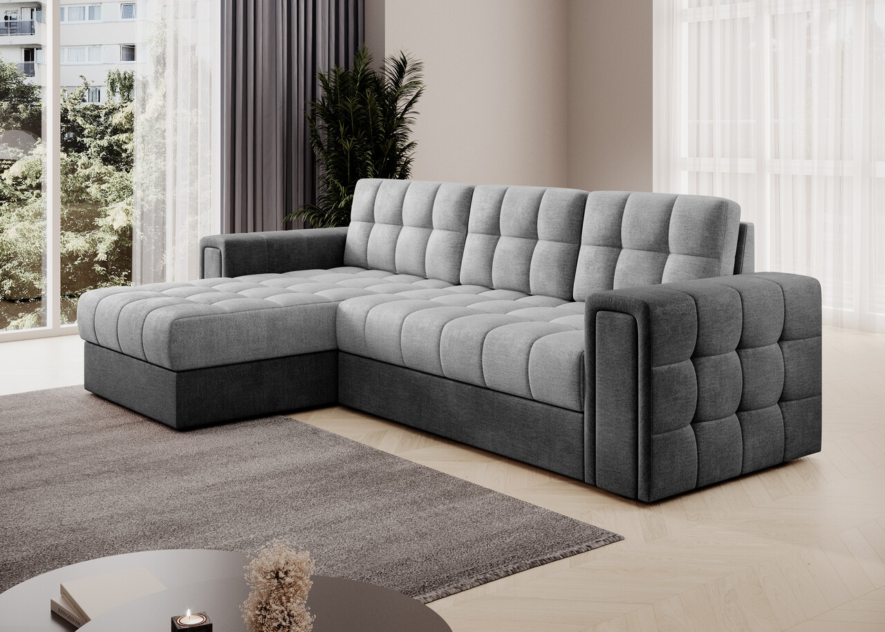 Coltar extensibil reversibil 3 locuri ELTAP, Blenvi, 260x150x82 cm, lemn/poliester, gri/gri inchis