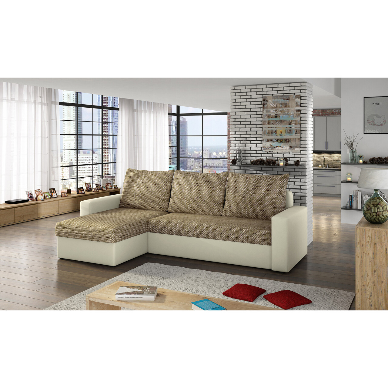 Coltar extensibil reversibil 3 locuri ELTAP, Livio, 237x150x72 cm, lemn/poliester, bej inchis/bej deschis