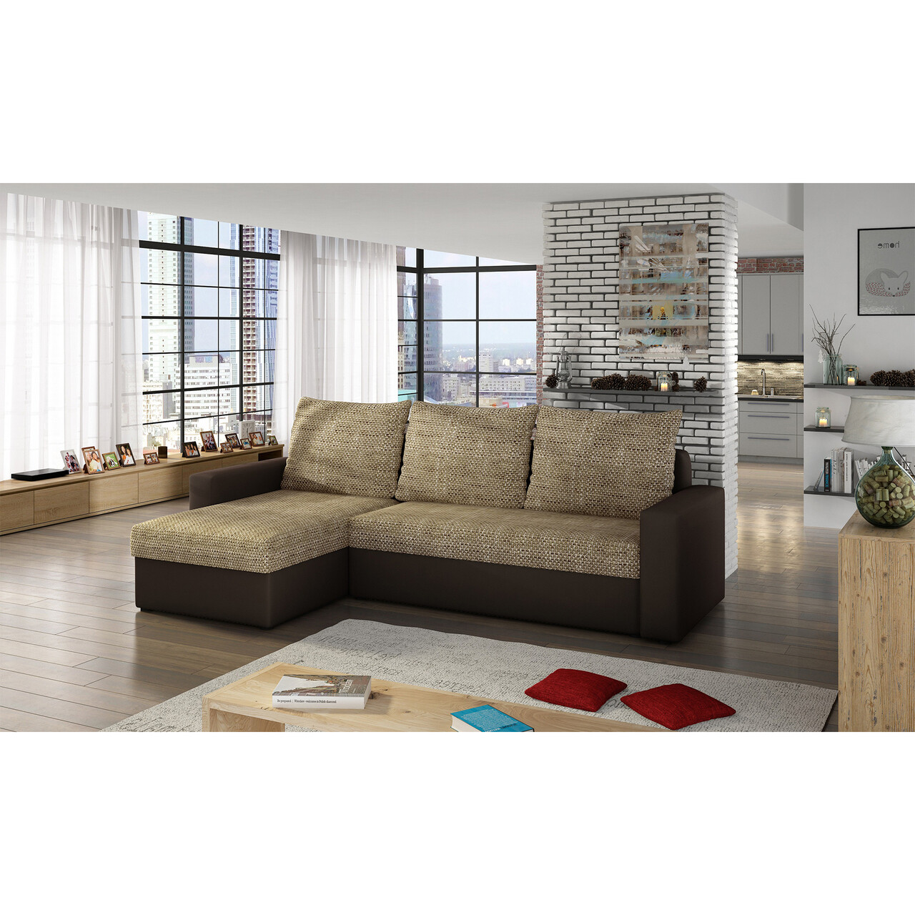 Coltar extensibil reversibil 3 locuri ELTAP, Livio, 237x150x72 cm, lemn/poliester, bej inchis/maro inchis