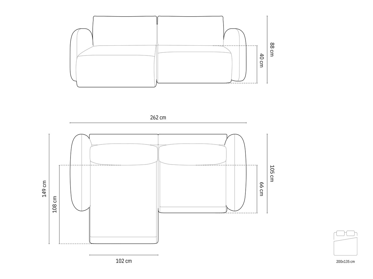 Dimensiuni suprafata de dormit: 200x135 cm.
