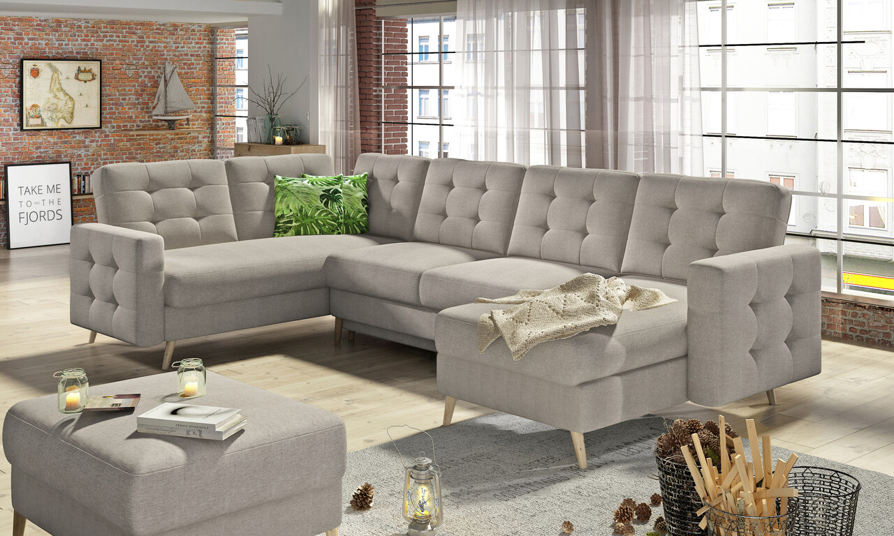 Coltar extensibil reversibil 5 locuri ELTAP, AsdU-01, Asgard, 326x202x93 cm, lemn/poliester, bej